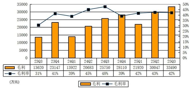 禾赛科技2025年第三季毛利为3.35亿元(约4704万美元),上年同期的毛利为2.58亿元;毛利率为42.1%,而2024年同期为47.7%。同比减少是由于高利润率的非经常性工程服务收入减少,惟部分由ADAS及机器人激光雷达有效的成本及规模优化所抵销。