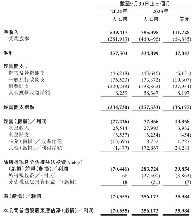 禾赛科技2025年前9个月运营利润为6677万元,上年同期运营亏损为3.11亿元;净利为3.1亿元,上年同期的净亏损为2.49亿元。