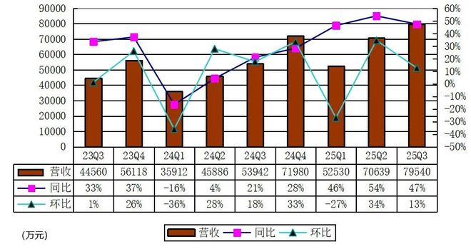 禾赛科技2025年第三季营收为7.95亿元(1.12亿美元),较2024年同期的5.39亿元增加47.5%。