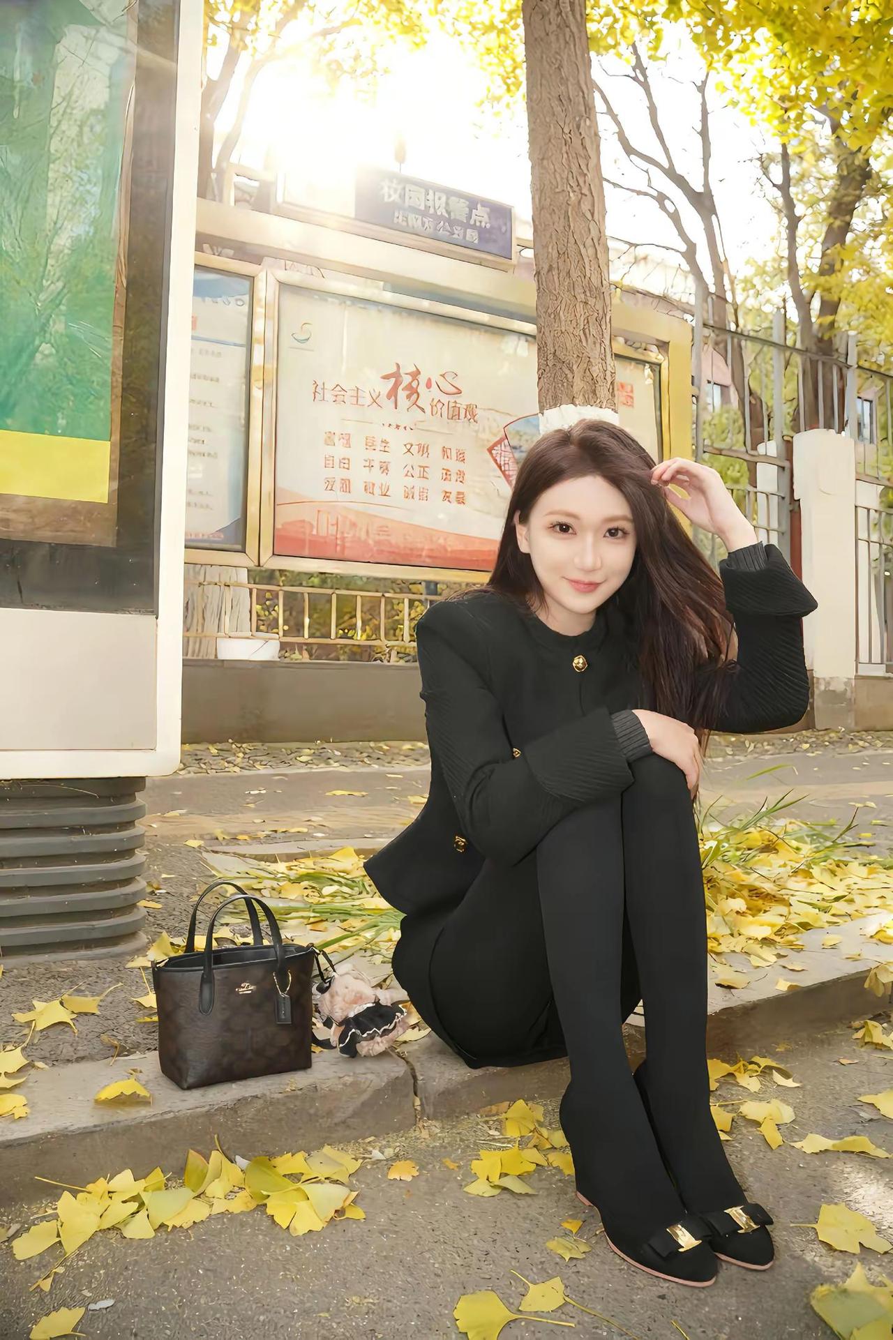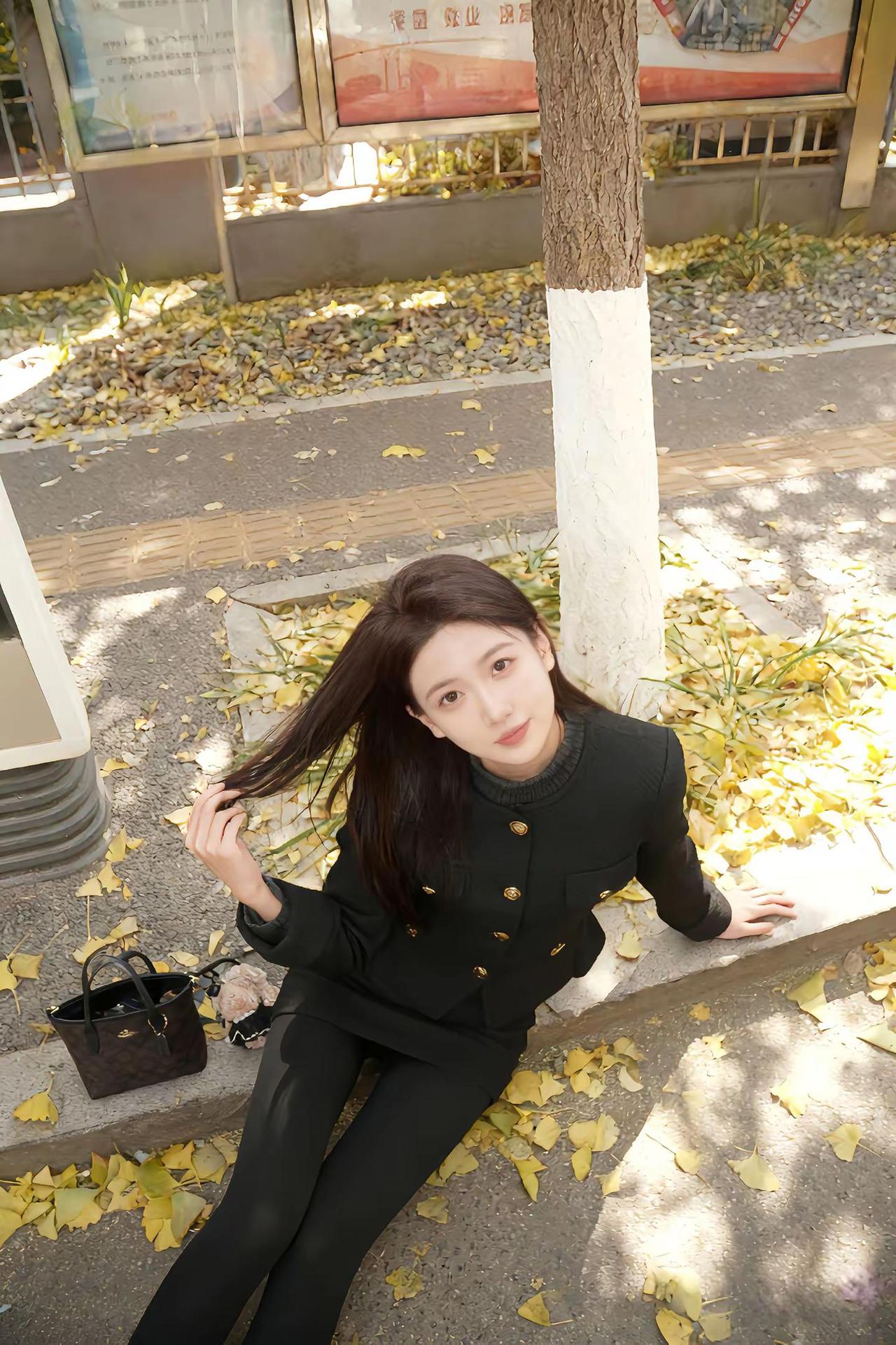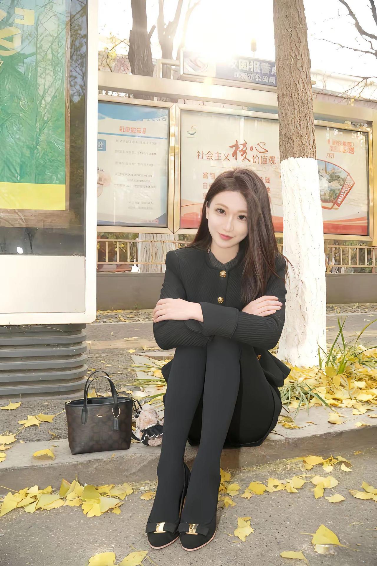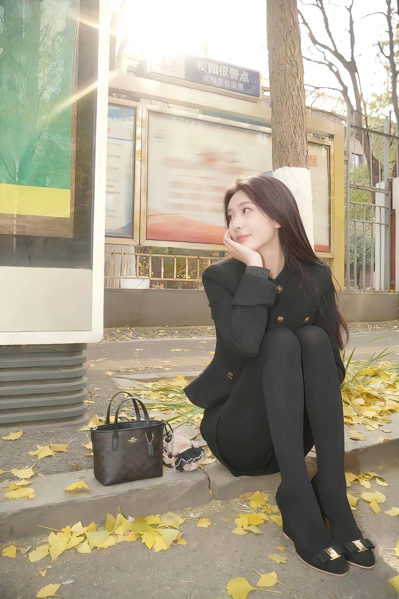 《宝蓝紧身上衣+灰色微喇裤,她把通勤穿搭穿出“辣妹高级感”!》地铁楼梯间这