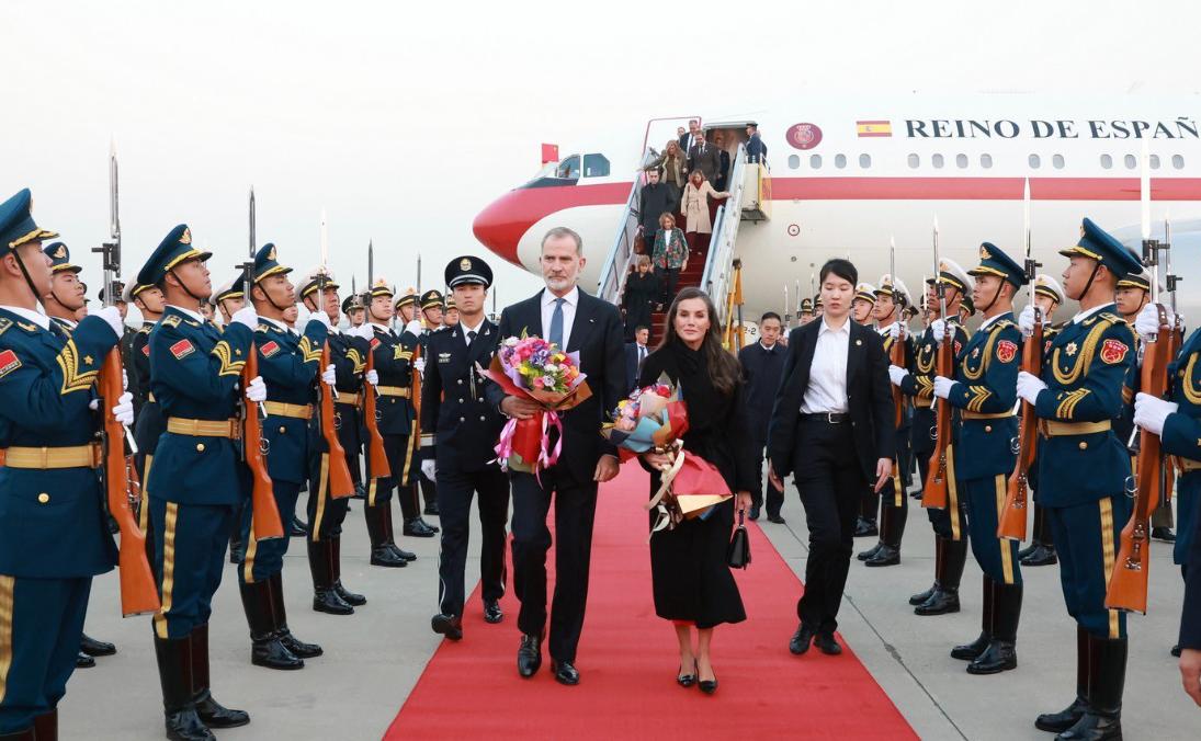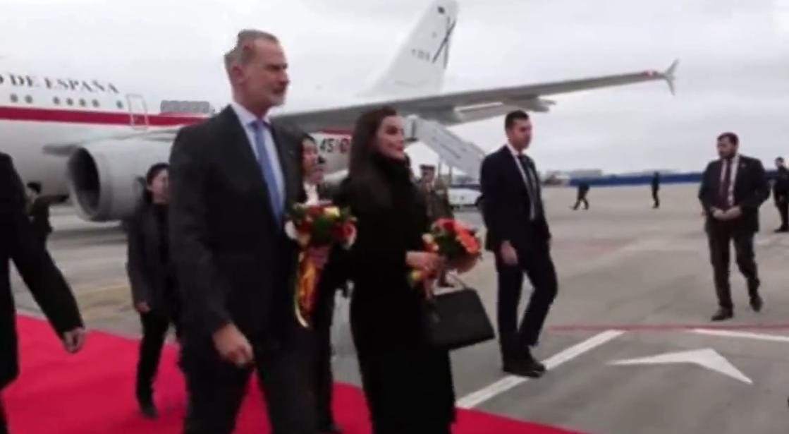 西班牙国王夫妇抵达北京机场,还抱着鲜花走机场红毯!11月11日费利佩国王与莱蒂齐亚王后从成都机场乘坐专机抵达北京机场。 北京可是首都,接待的仪式感满满,仪仗队夹道欢迎不说,国王陛下走在红毯上就像明星走红毯似的,还有王后陛下比抵达成都机场时穿得隆重多了。 看来国王夫妇很重视这次北京之行,中方也给足了面子,他们走在北京机场的红毯上,双手抱着鲜花,可谓是风光无限,在欧洲出访估计都没有在这待遇高。