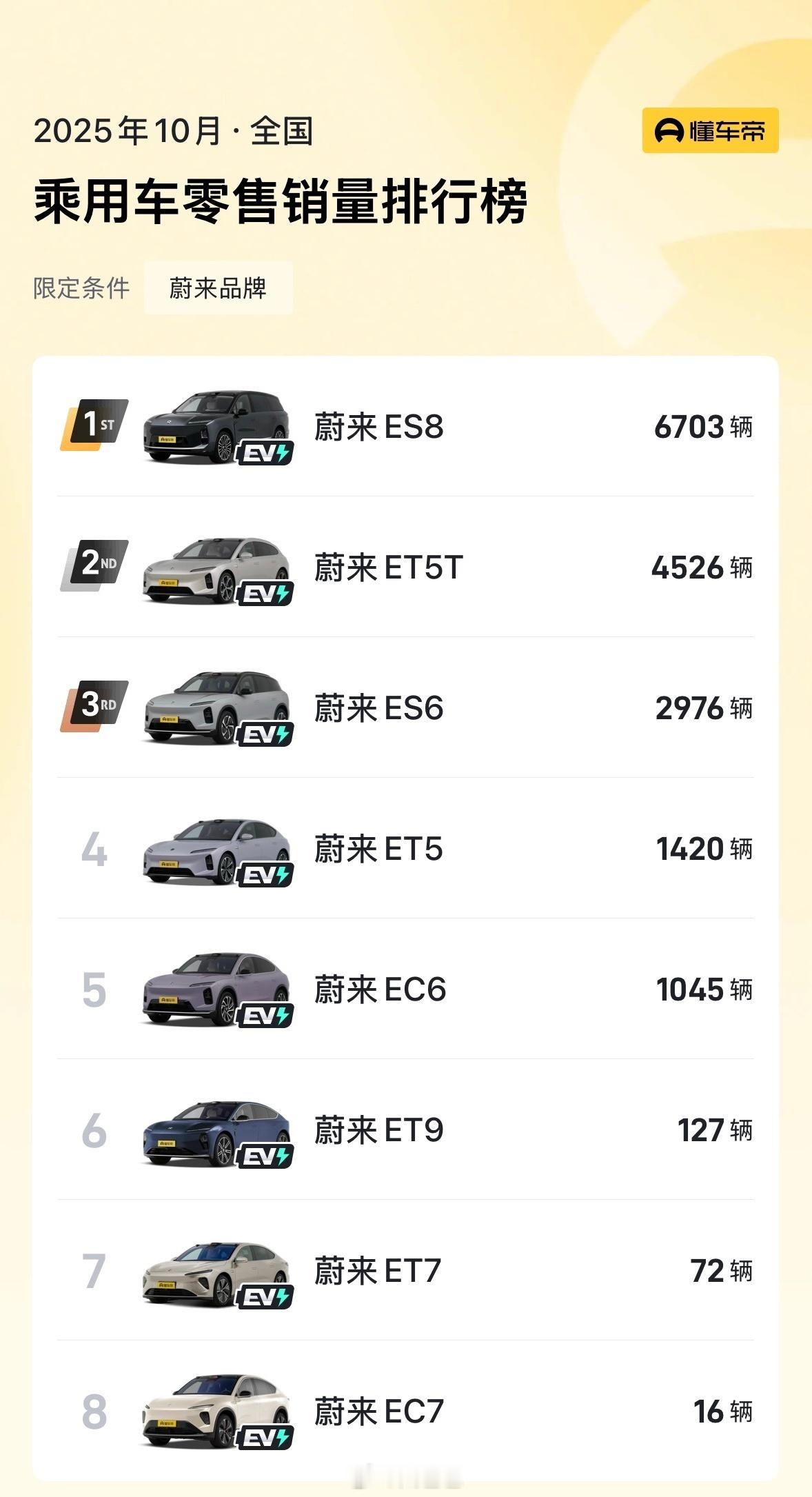 理想10月车型销量明细。有点意外啊,一个破万的车型都没有。最高的L6也只有9
