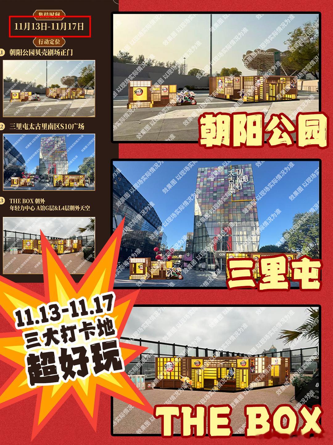 鬼灭迷狂喜,上海首映的无限城布景已经很还原了,更狂喜的是!北京的活动也来了!!三里屯、朝阳公园、the box 各种打卡点复刻电影中无限城场景,🈶最沉浸式的体验感,还有趣味游戏,有奖集章、扭蛋机等游戏等你来玩,更贴心的是城内服务,专属巴士接送这你忍得了?鬼灭你这么认真玩我怎么会辜负你,必冲榜又➕11111!我将拍一万张照片