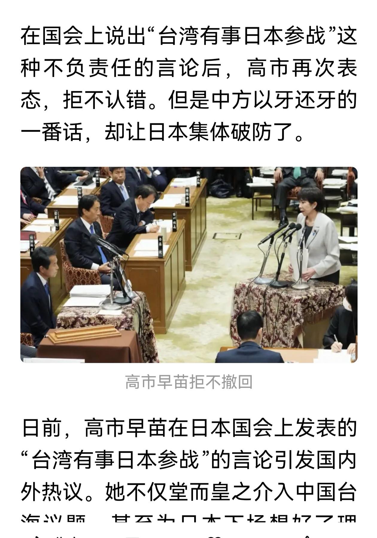 我对高市早苗强调的所谓假设性的言论,台湾有事就是日本有事,台湾事关日本生死存亡的
