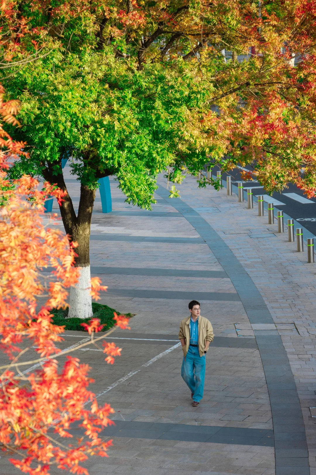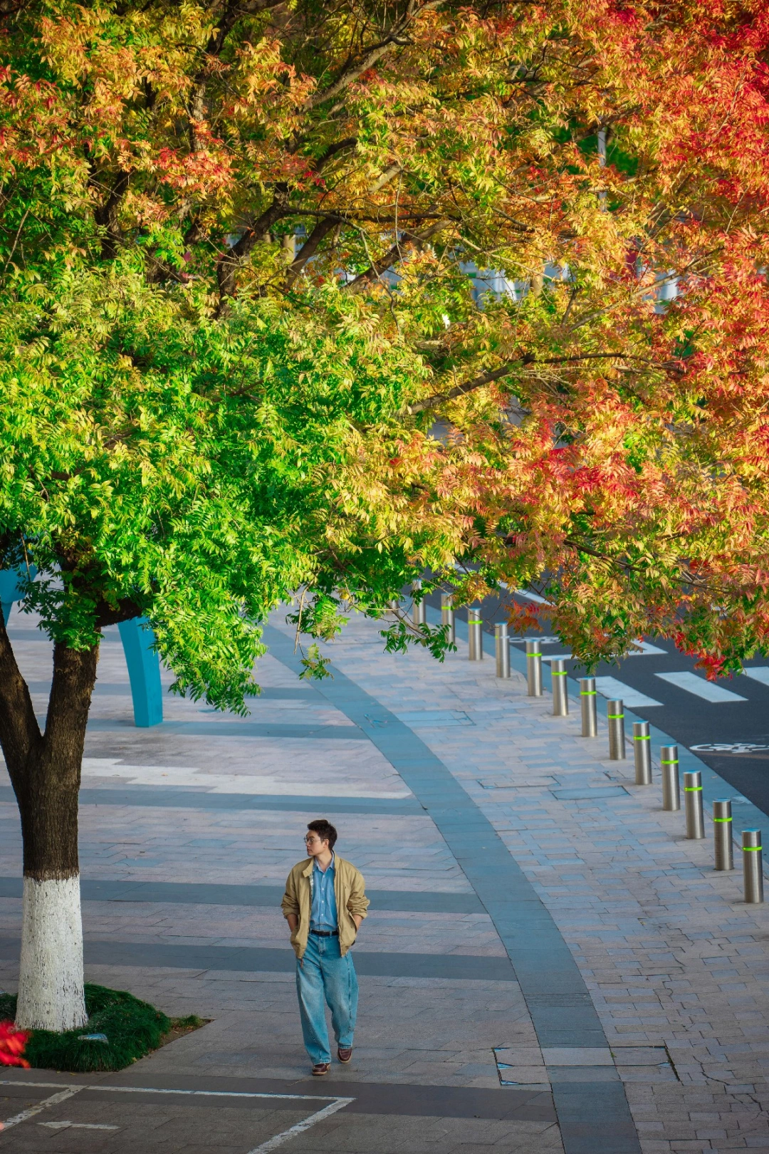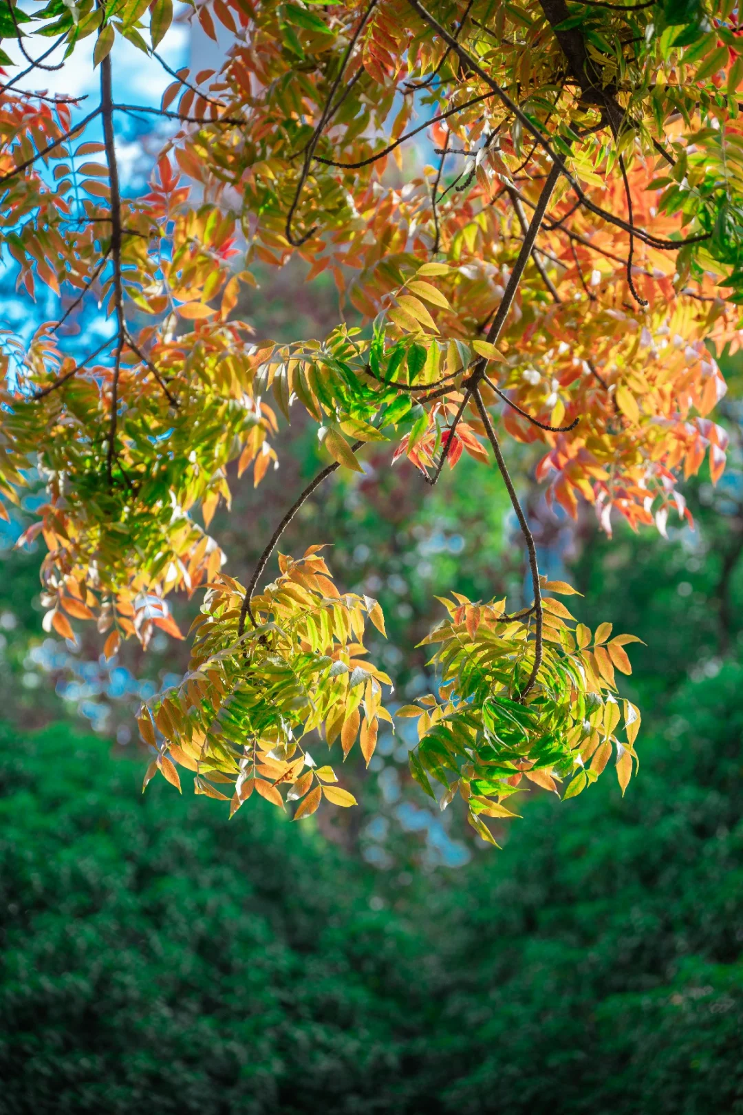 从翠绿到金黄再到绯红