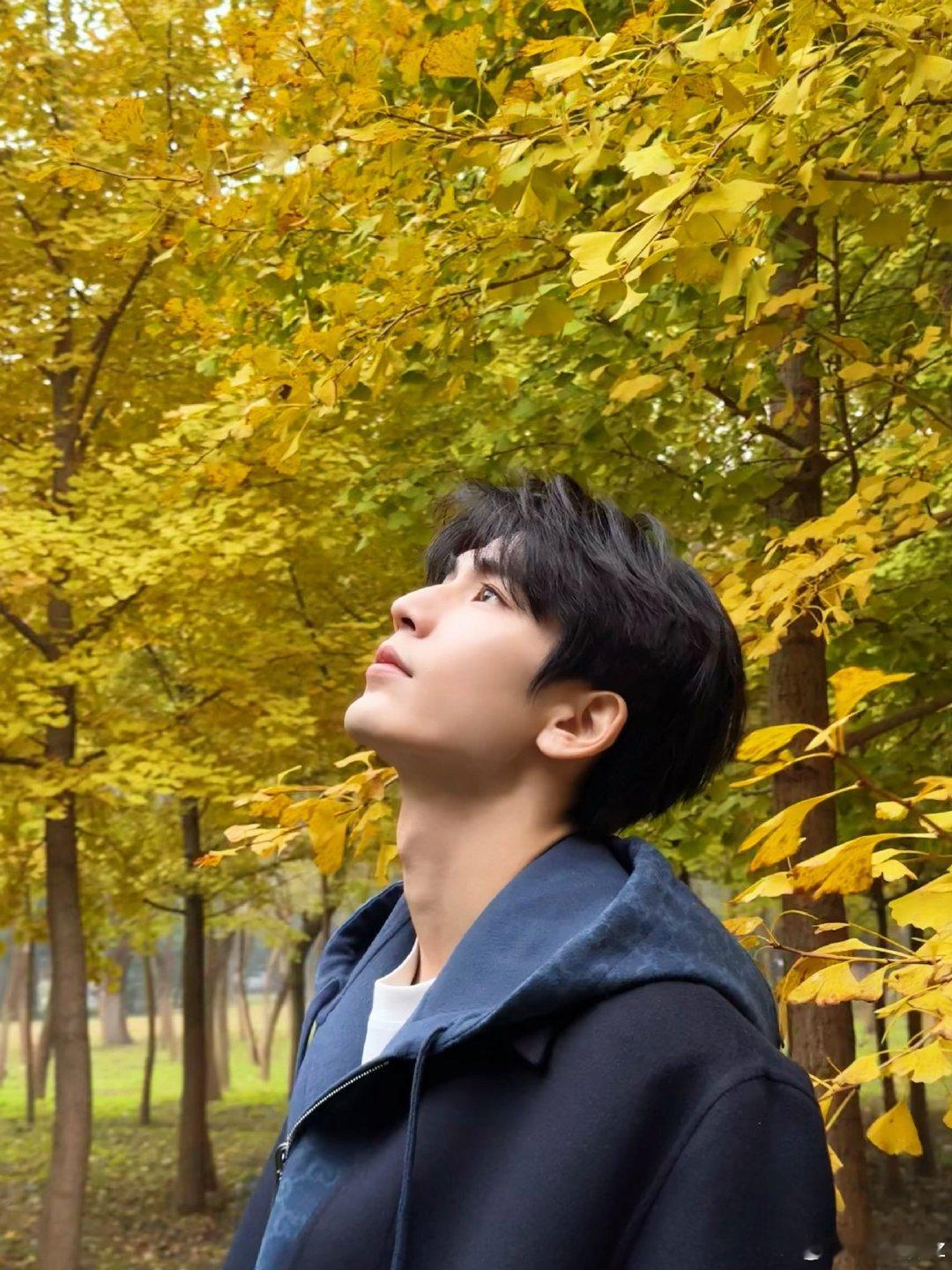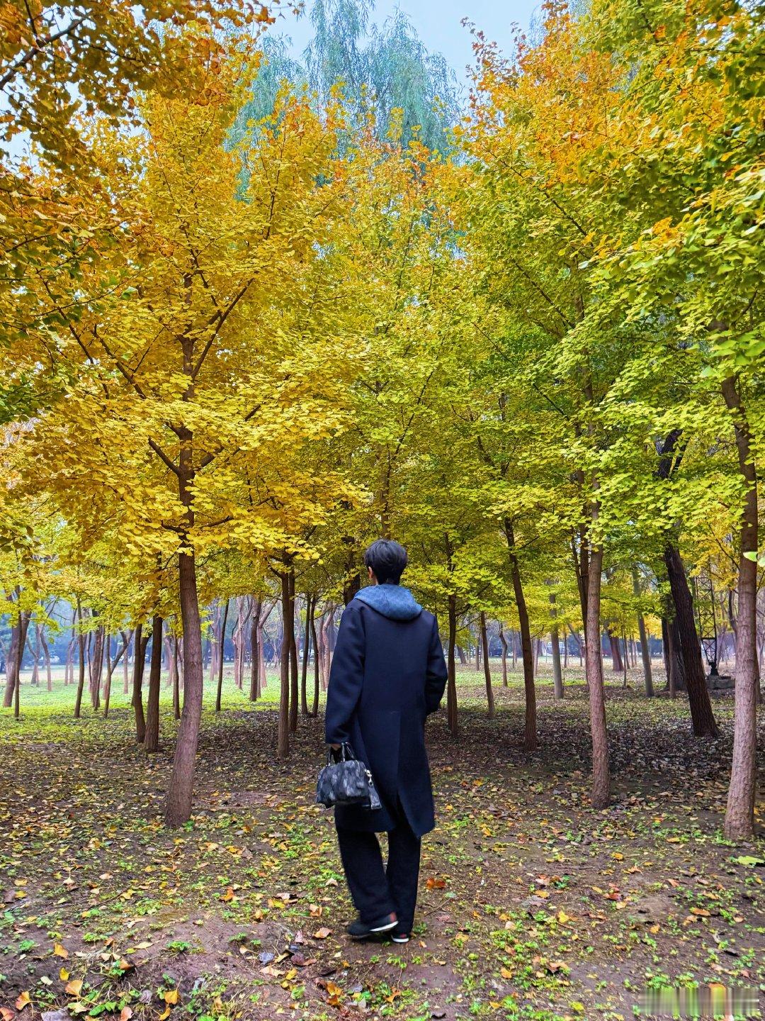 张凌赫秋日银杏随拍来啦这是哪里来的青春男大呀,黑色大衣叠穿造型一整个拿捏住了秋日时尚穿搭想和 一起去赏秋