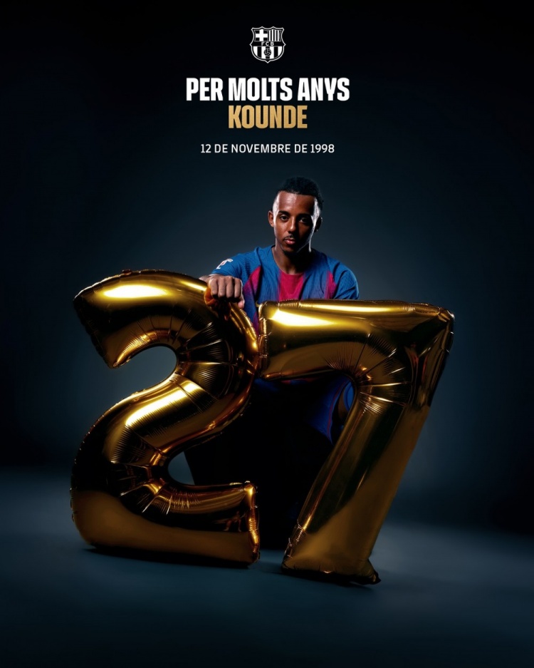 巴萨官方社媒晒出孔德的生日海报,配文:“生日快乐,孔德!”
