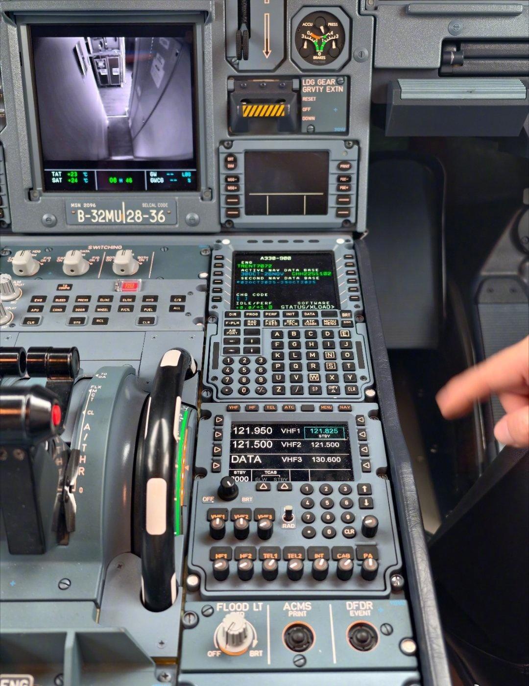 飞行员师傅的新办公室,A330neo的驾驶舱。除了没A350大屏,操作逻辑几乎完全一样。最好玩的是图三,导航系统集成了ADSB-IN。飞机应答机都有ADSB-OUT,也就是用无线电不断广播“我是谁,我在哪”的系统。过去ADSB系统是给空管看的,爱好者也可以通过软件查阅天上所有开了应答机的航空器的信息。但是长久以来,飞行员如果想知道周围都有些啥,最简便的办法就是拿自己的平板,连上机上WiFi,打开flightradar24。。 现在,终于,导航系统里也能看flightradar了。机组的感知能力进一步加强,决策更安全了。