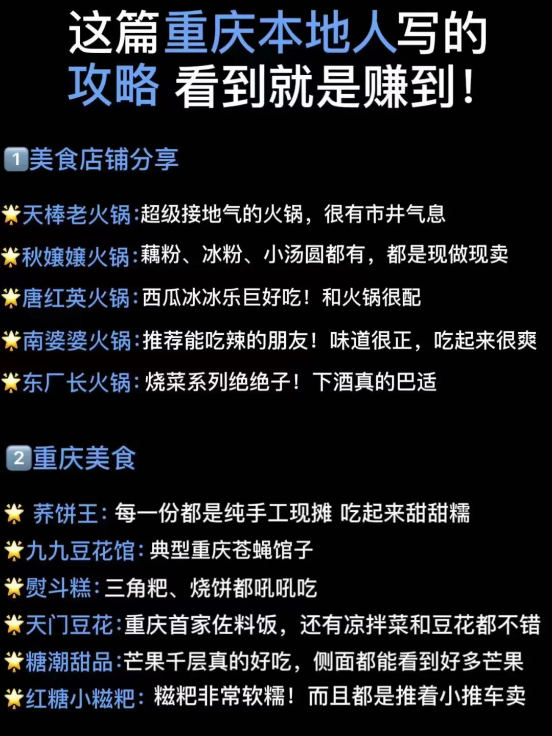 🌈准备来玩的家人们,收好这份重庆本地人做的攻略哦,细节到位