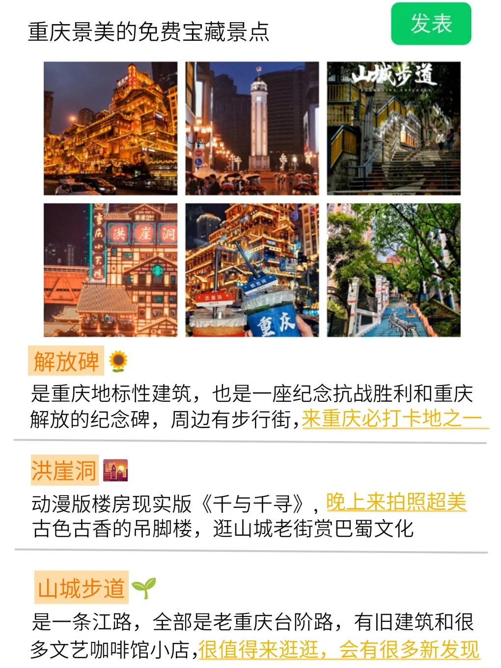 暑假来了🔥是时候去旅游一趟了🍃整理了重庆必去的景点,要避雷的事情,还有美食推荐希望来重庆旅游的朋友们看了这篇攻略能够有个愉快的重庆之旅哦~