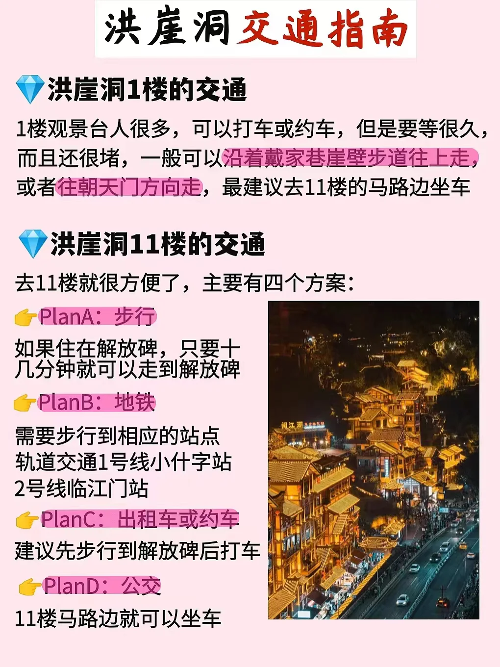 这里可以拍出很全面的洪崖洞景色,来往的车辆拍进去会有种流动感