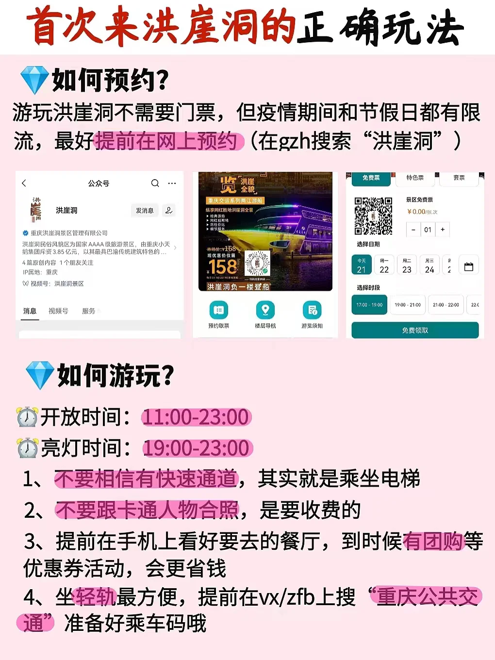 1、洪崖洞不需要门票,但是要提前在网上预约(在gzh搜索“洪崖洞”,点击免费领取即可)