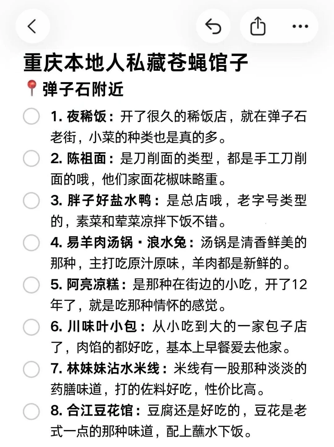花了一整天功夫,给即将打卡重庆的姐妹们,整理了份,藏在重庆各个街头巷尾的宝藏苍蝇小馆合集,基本都是一些老小店哦! . 1️⃣鼎食居 2️⃣ 赵记食店 3️⃣ 龚大娃豆花面 4️⃣小龙蹄花店 5️⃣ 碓窝鸡 6️⃣ 海关荤豆花 7️⃣ 夜稀饭 8️⃣ 陈祖面 9️⃣ 胖子好盐水鸭 🔟 火凤凰老火锅 1️⃣1️⃣ 奇味干锅 1️⃣2️⃣ 佳家乐万州香辣烤鱼 .