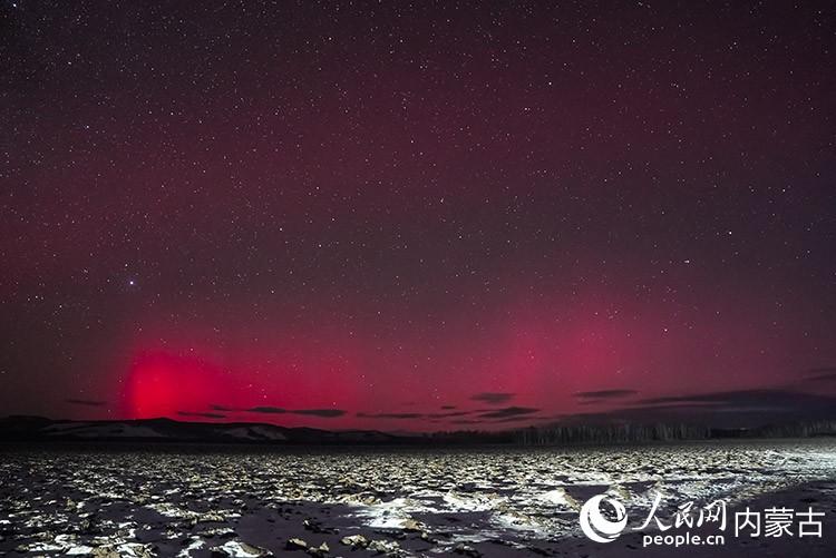 人民网呼伦贝尔11月11日电(记者张力洋)11月12日-13日,位于内蒙古自治区呼伦贝尔根河市全域范围内现红绿色极光,极光绚烂,晕染夜空,似切开的“巨型西瓜”,将北疆小城的夜空照亮,这也是根河市连续两年出现极光景观。