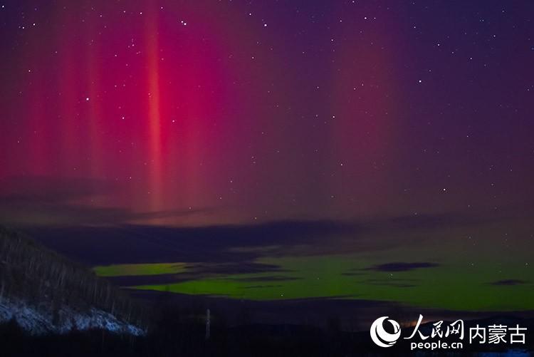 据悉,根河市位于内蒙古自治区东北部、呼伦贝尔市北部,是内蒙古自治区纬度最高的地区之一,是我国观测极光绝佳点位。本次极光持续近在10个小时,从12日晚七点至次日凌晨四点,境内出现的极光,为小概率红绿复合极光。