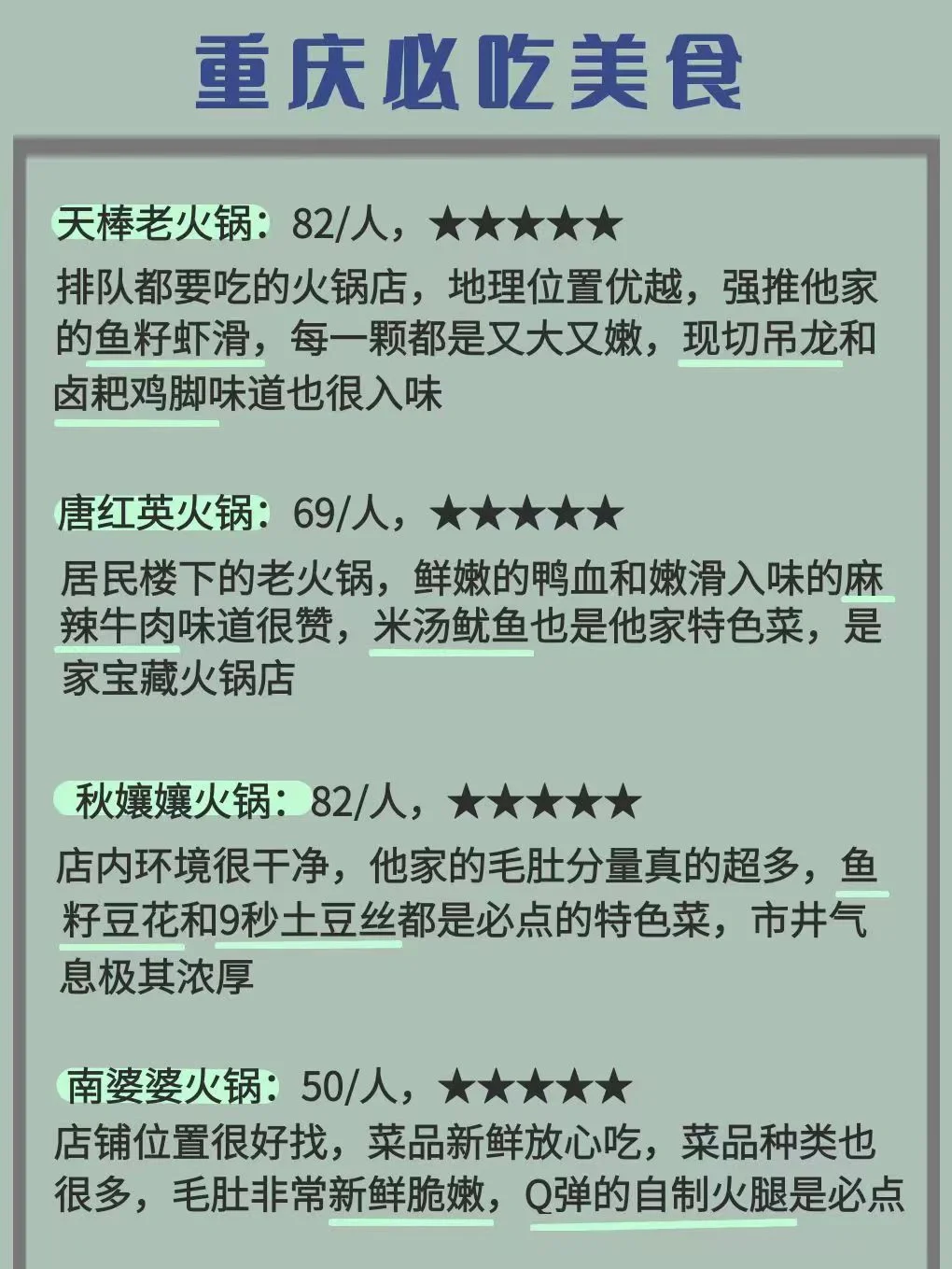 还有秋嬢嬢火锅、南婆婆火锅,大家也可以去试试,都是重庆的味道