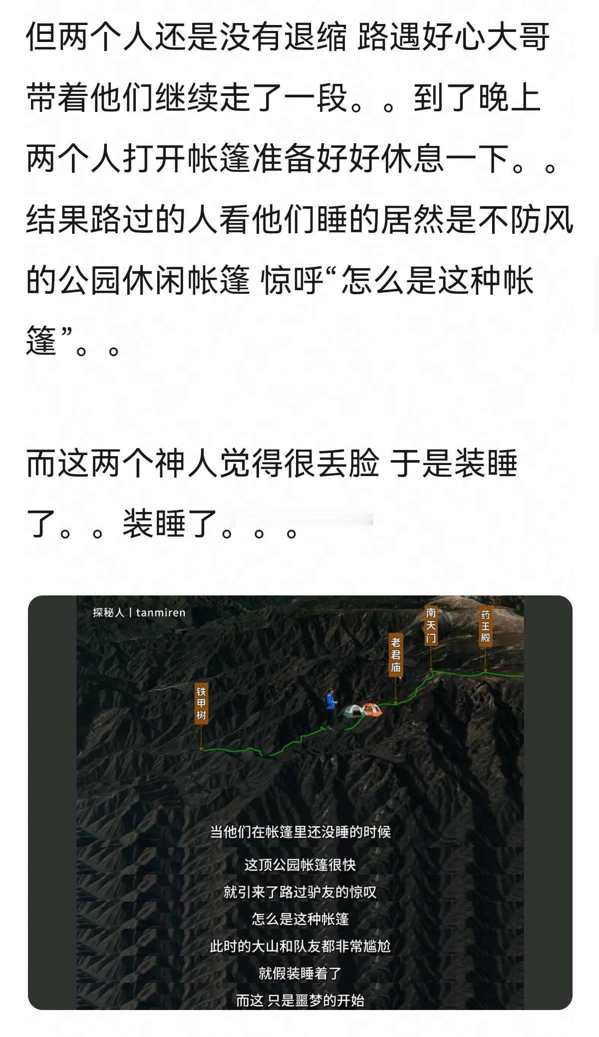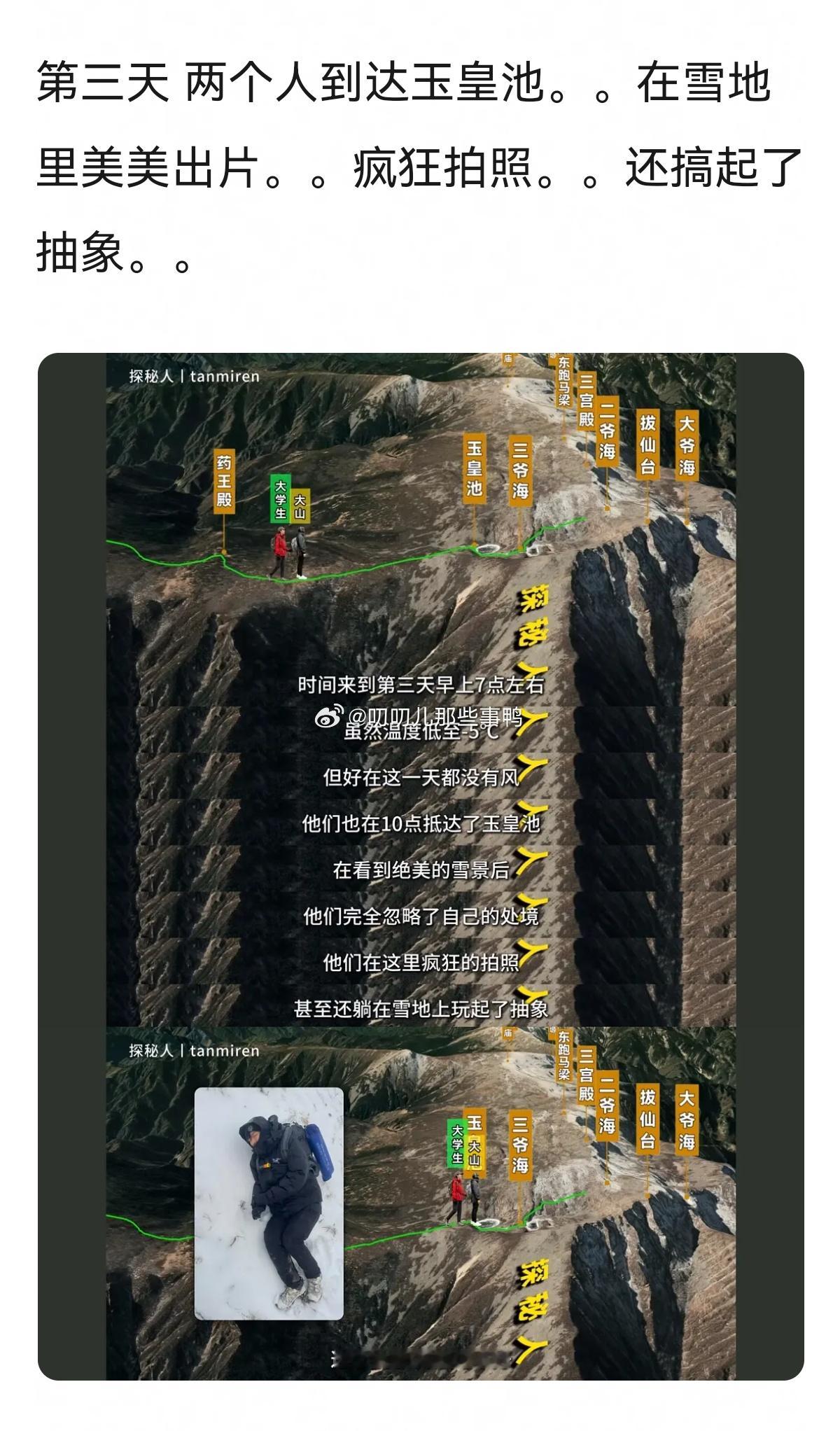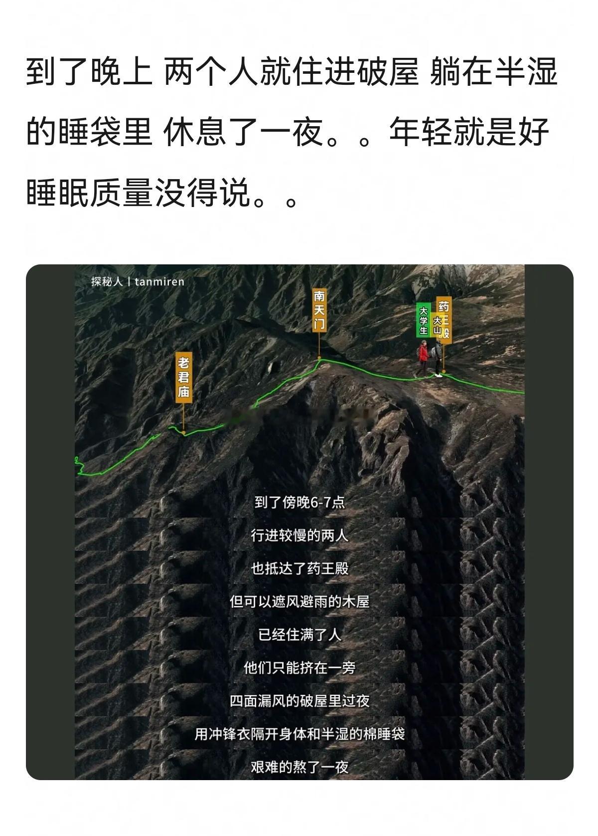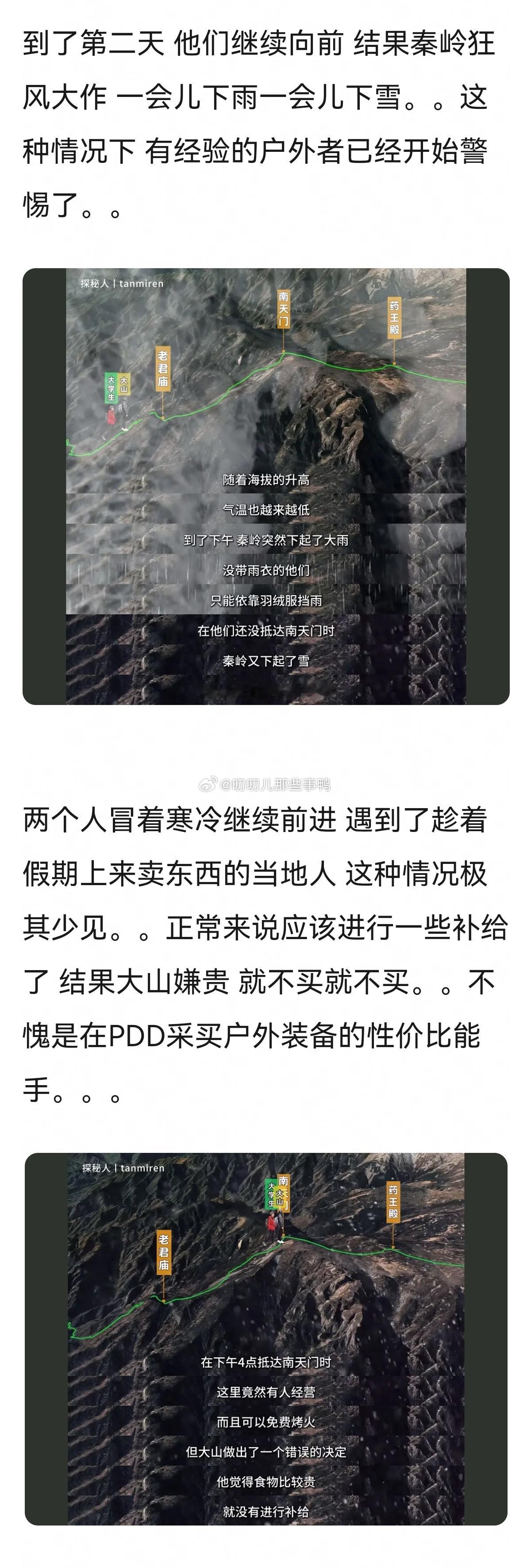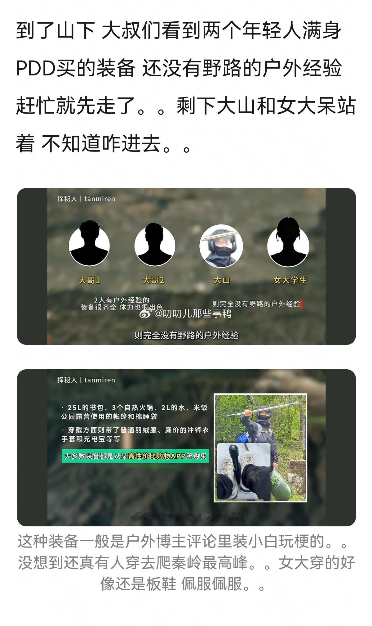 不愧是一身牛劲的大学生,完全靠着幸运和年轻→户外圈来了一对活宝,靠PDD装备登顶秦岭最高峰。。。