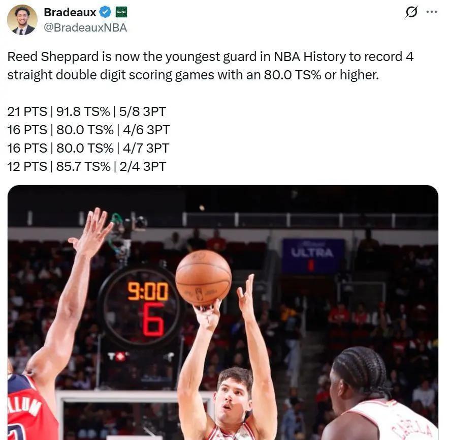数据帝:库里追平詹姆斯成历史最老,约基奇生涯首次50+赢球,火箭探花创最年轻纪录! 一、在勇士125-120战胜马刺的比赛中,库里投篮25中13,三分16中5,罚球16中15,砍下46分5篮板5助攻2抢断的数据。这是库里在35岁后第6场45+,追平詹姆斯并列历史最多。据统计,库里本赛季前十场比赛场均砍下27.1分,以37岁244天的年龄成为NBA历史赛季开赛前十场比赛场均25+最老的控卫球员。 二、在掘金130-116战胜快船的比赛中,约基奇投篮23中18,三分6中5,罚球16中14,砍下55分12篮板6助攻1抢断1盖帽的数据。1、约基奇以78%的投篮命中率成为NBA历史砍下50+得分命中率最高的中锋。2、约基奇单节25分创NBA历史中锋首节得分纪录,也是本赛季球员单节得分纪录。3、单场55分创约基奇本赛季得分新高,也追平亚历山大并列本赛季联盟球员最高得分。值得一提的是,这是约基奇职业生涯首次在单场砍下50+得分时赢球,此前4次50+均输球。 三、在火箭135-112战胜奇才的比赛中,火箭2024年探花谢泼德11投8中,三分8中5,罚球1中0,砍下21分3篮板3助攻2抢断1盖帽的全能数据。据统计,谢泼德已经连续4场比赛得分上双同时真实命中率不少于80%,成为NBA历史最年轻达成此成就的后卫球员。