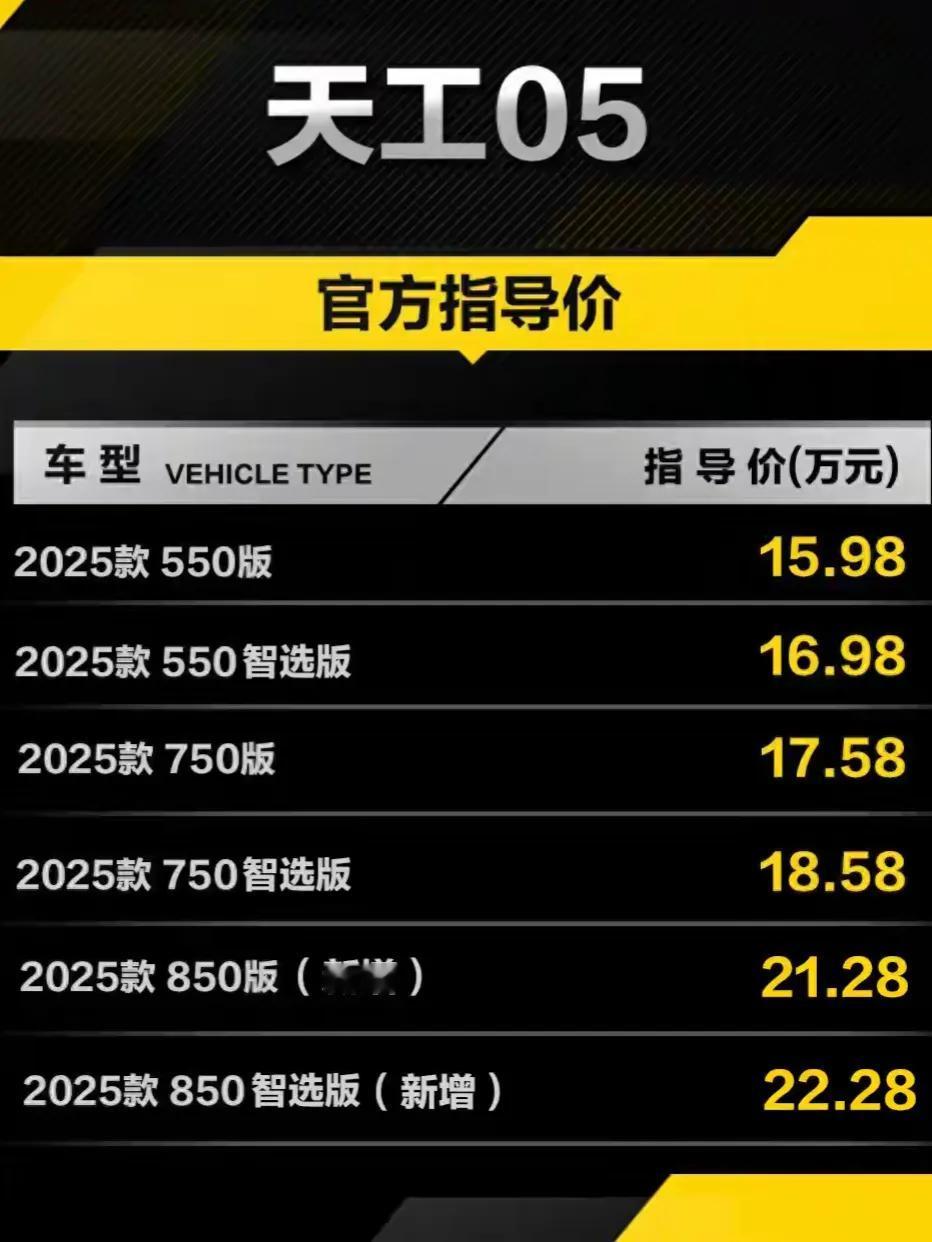 一觉醒来,车市炸锅了!工信部连发3个重磅消息 1 ,.2026年7月1日起,电池“不起火、不爆炸”是基本要求,还要新增底盘碰撞测试 2,2026年1月1日起,新能源车不再免除购置税,恢复“半价”优惠,且优惠上限为1.5万元; 3,2027年1月1日起,部分高能耗燃油车购置税或将上调。 离2026年还有两个月,喜欢纯电车车友需要尽早决定!红旗天工05这是一款集颜值、性能和智能于一体的纯电车。 和孙颖莎搭在一起 2025年,一汽红旗旗下天工系列首款电动中型轿车天工05闪耀登场。1月24日定名,2月26日正式上市,全国零售价15.98万元起,8月29日又迎来基于900V平台打造的850版和850智选版车型上市。 天工05在产品设计上独具匠心。它是红旗E009概念车的量产版,保留了诸多概念车的设计元素。封闭式前脸搭配弹出式隐藏车门外拉手,标志性的前旗标和侧旗标彰显红旗的独特魅力。 车身棱线运动感十足,L形尾灯组和半封闭式轮辋设计别具一格。其长宽高分别为4820×1915×1480毫米,轴距达2900毫米,空间表现出色。 动力方面,搭载单电机,最大功率210千瓦,最高车速200公里/小时,提供两种整备质量可选,可乘坐5人。 续航上,有550公里、750公里和850公里三种CLTC工况续航里程车型供消费者选择。 特色功能是天工05的一大亮点。智能驾驶以“高阶智驾”为卖点,城市/高速NOA功能无需高精地图,跨楼层记忆泊车功能强大,能在2公里内自动寻车位,还可实现狭窄车位垂直泊车。 红旗司南智驾系统集成多种高级驾驶辅助功能,领航功能开启适用范围广。智能科技应用方面,内置车载AI助手,提供全方位服务。基于6大首发技术,搭载仿生视觉端到端全场景方案,实测性能达行业领先水平。 天工05凭借出色的设计、性能和特色功能,成为电动中型轿车市场的有力竞争者。买车就要买红旗,豪华气派倍有面!