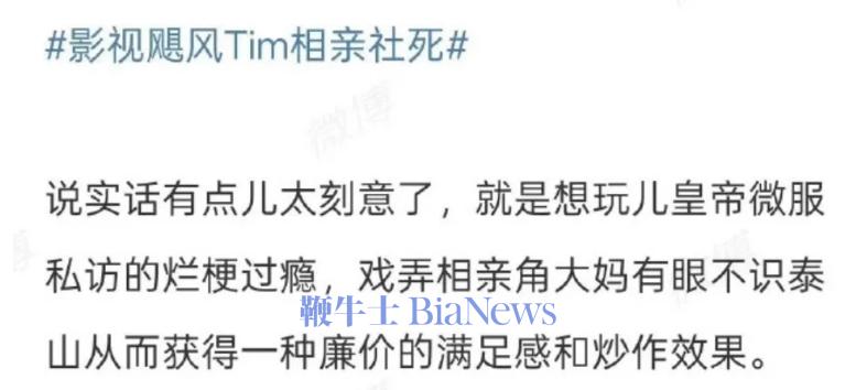 近日,影视飓风CEO潘天鸿(Tim)发布自带简历去杭州相亲角的视频,其中简历的低调引发争议,被网友称其在“玩儿皇帝微服私访的烂梗过瘾”。