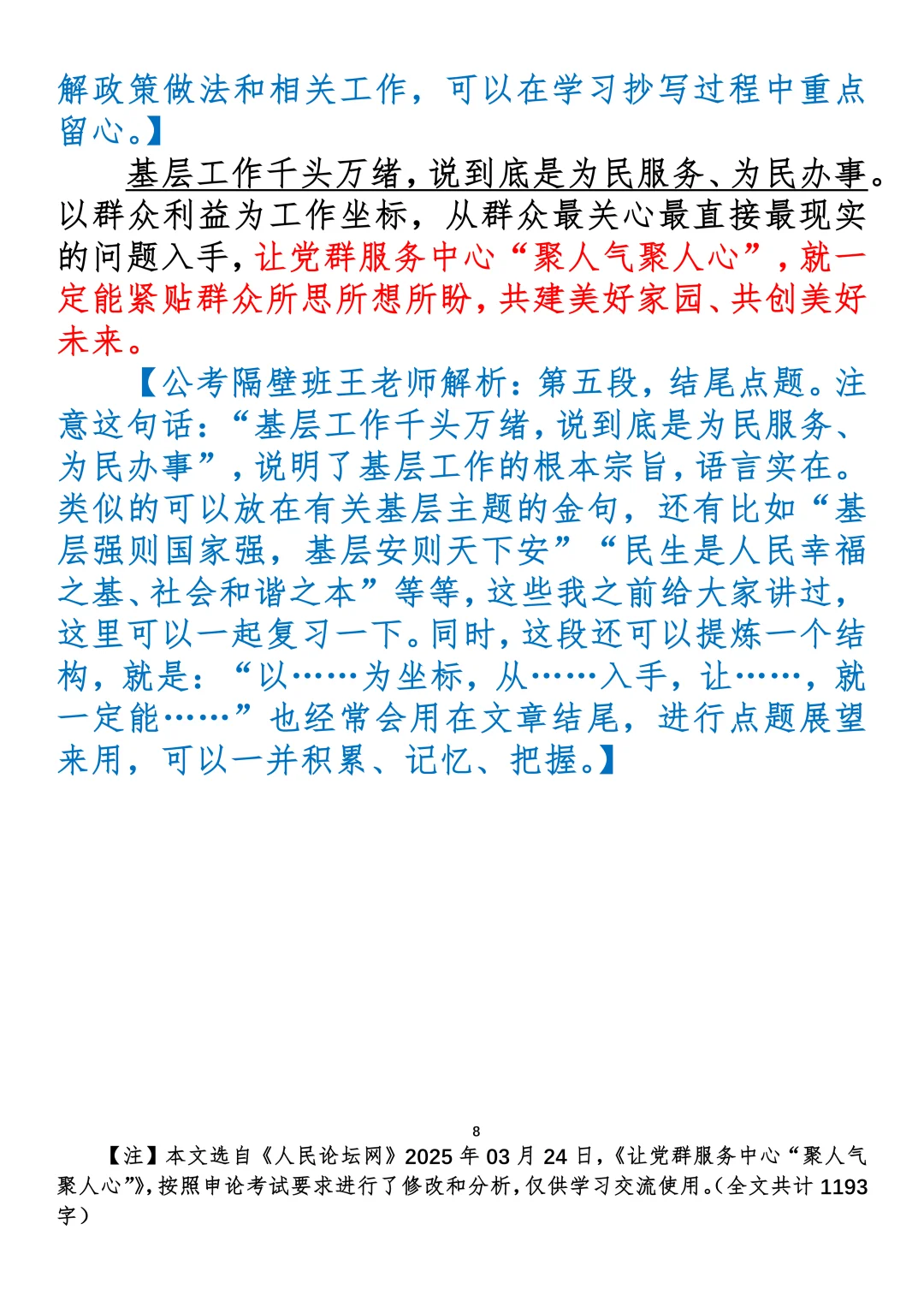 如何抄写:每日抄写文章发在“公考隔壁班王老师”账号,红色字是重点句和结构句,黑色字是正文,蓝色字是解析,大家抄写时不必抄蓝色字。建议先通读全文,做到心中有数再开始抄写,效果会更好。关于文章:抄写文章来源于人民日报,但每篇文章我都根据申论考试要求进行了修改:一是重写或修改开头、结尾;二是统一段首句句式结构;三是调整段落字数,使文章结构更均衡;四是简化复杂长难句,使之更具可模仿性。每篇文章无论修改多少,都是基于申论考试要求,毫无对人民日报文章品评之意。(此处致敬人民日报)