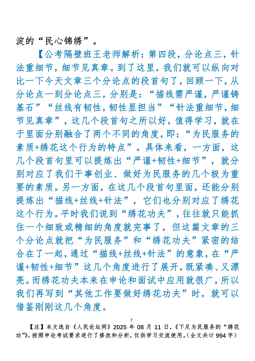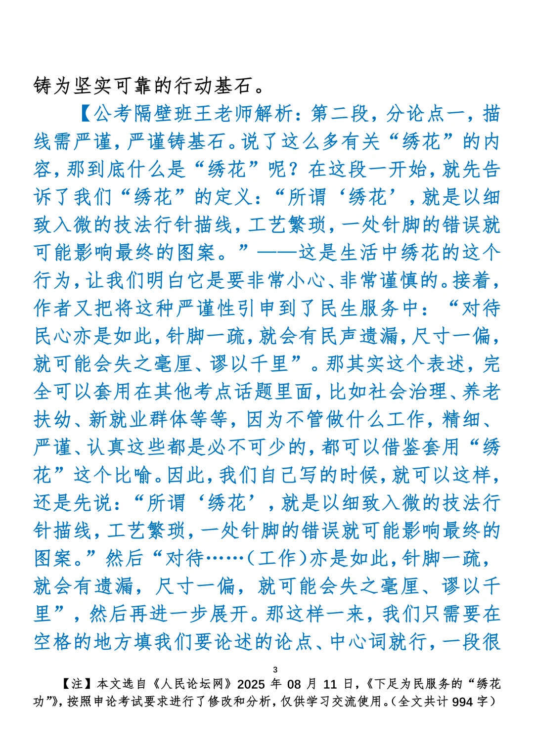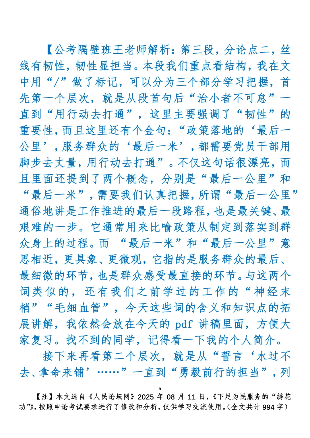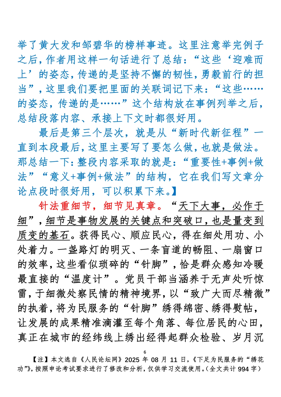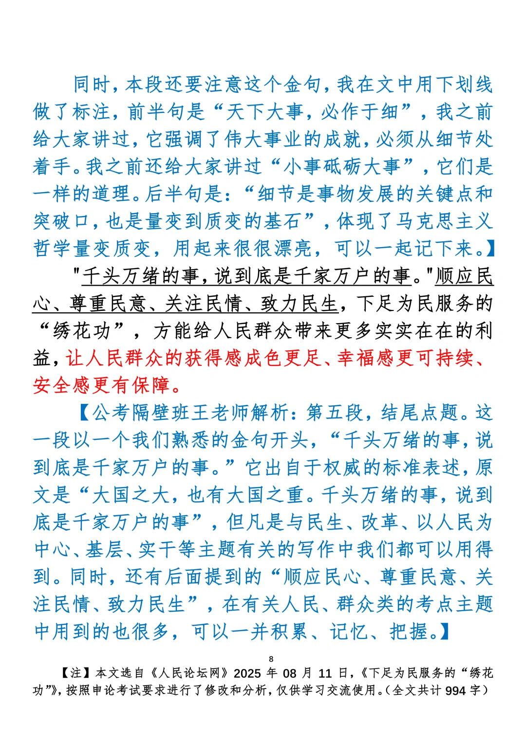 如何抄写:每日抄写文章发在“公考隔壁班王老师”账号,红色字是重点句和结构句,黑色字是正文,蓝色字是解析,大家抄写时不必抄蓝色字。建议先通读全文,做到心中有数再开始抄写,效果会更好。关于文章:抄写文章来源于人民日报,但每篇文章我都根据申论考试要求进行了修改:一是重写或修改开头、结尾;二是统一段首句句式结构;三是调整段落字数,使文章结构更均衡;四是简化复杂长难句,使之更具可模仿性。每篇文章无论修改多少,都是基于申论考试要求,毫无对人民日报文章品评之意。(此处致敬人民日报)申论 遴选 公务员