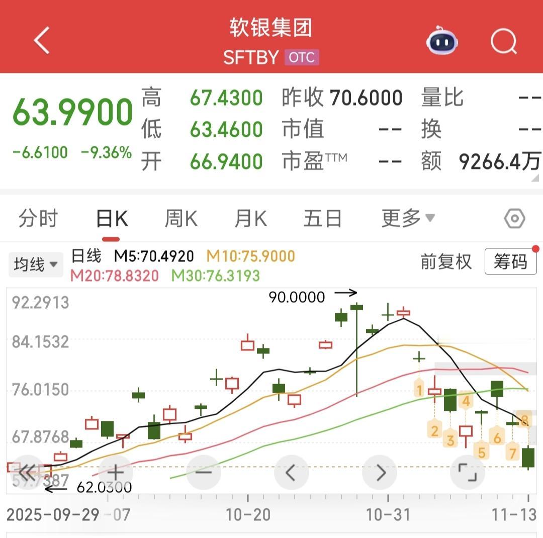【AI泡沫时代来临了吗?】 从年初的DeepSeek爆火内外网络,资本市场迎来了一轮AI人工智能的投资狂潮。 人工智能板块指数年内涨超40%,美股英伟达更是突破5万亿美元市值,创历史新高。 但近期人工智能板块出现大幅回调,多股下跌超10%以上。软银集团近日清仓了英伟达全部3210万股股份,套现约58亿美元。 “AI是否存在泡沫”的话题被推上风口,软银高管称无法判断当前AI行业所处阶段。 今日软银集团股票超跌9%,是否是市场对其清仓英伟达股票操作的过度反应?但同时也反映出市场对AI是否存在泡沫观点的两极分化。 小编认为目前人工智能属于高位,如果前期已经获取高额利润,不如学一学软银的操作先出掉持仓锁住利润,等等看市场反应,再进行操作。