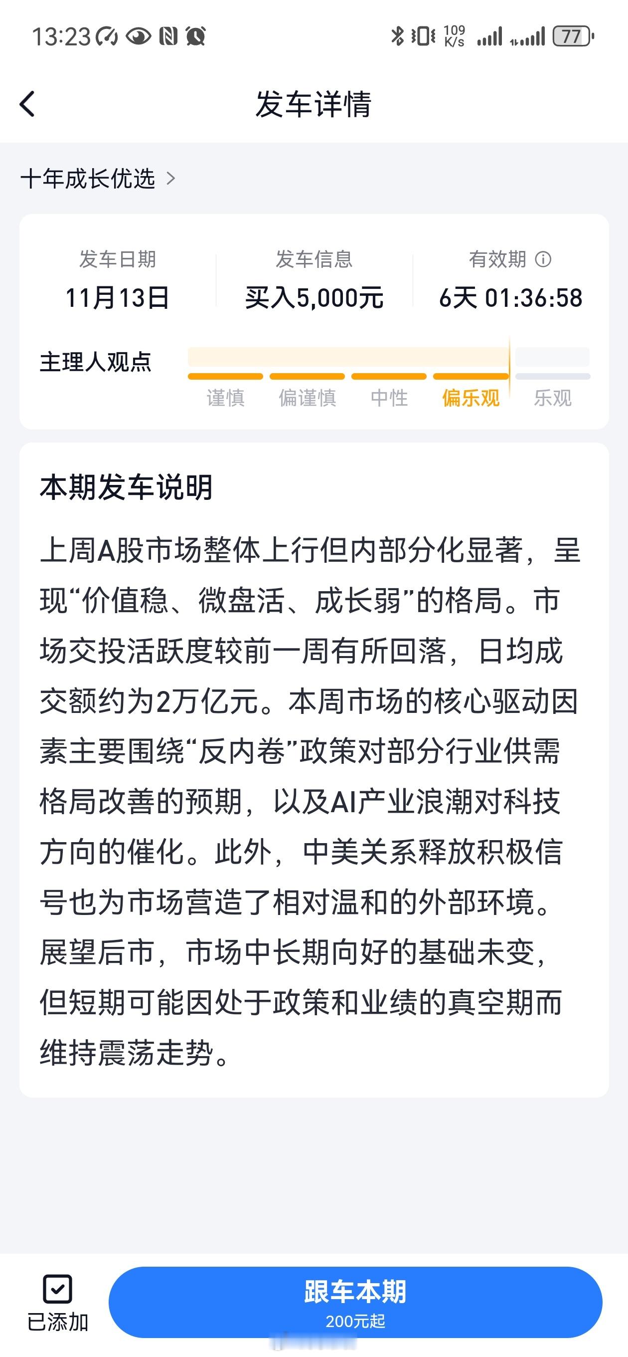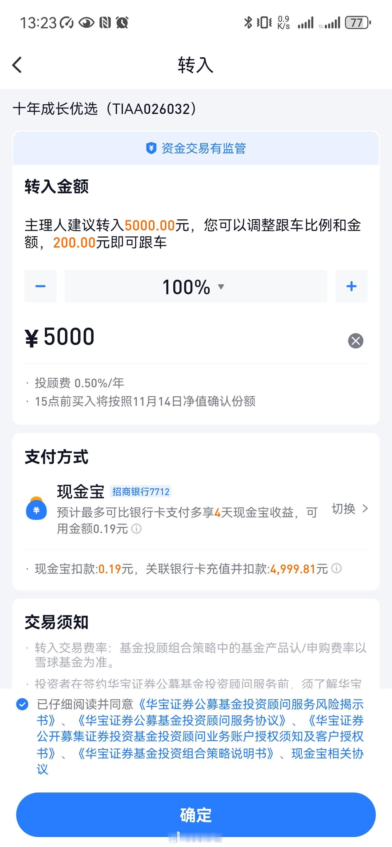 昨天没等到回调,今天等到了,今天跟车十年成长优选 十年成长优选今年以来取得了32%的正回报,目前年化在7.5%左右。继续执行:闲钱投资,坚定跟车,耐心持有,必有回报!