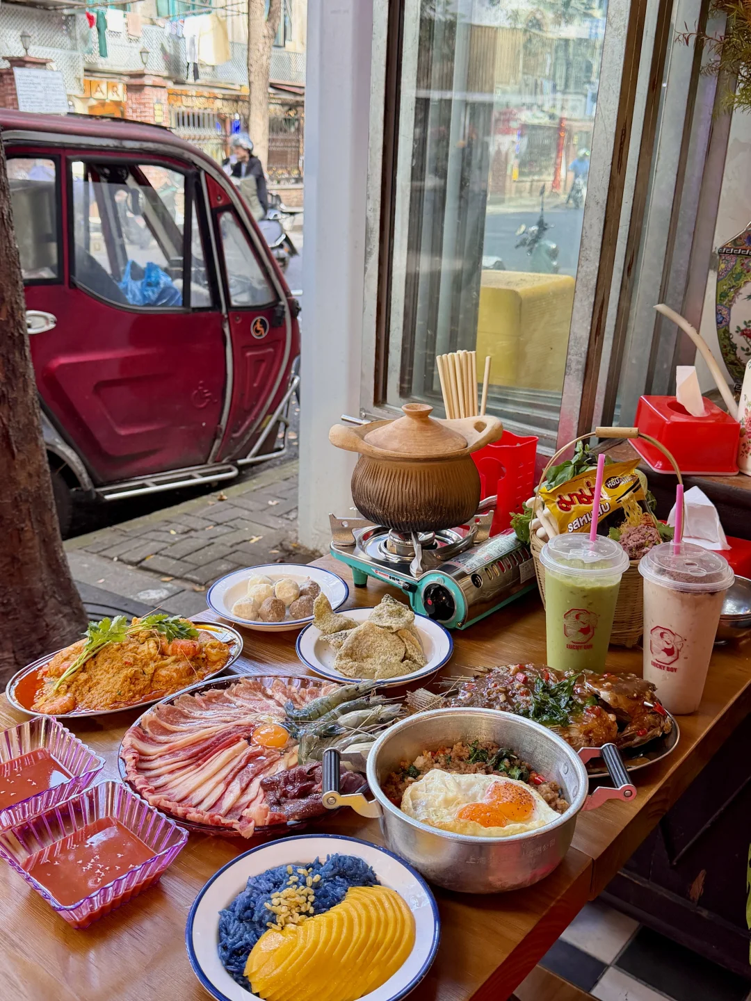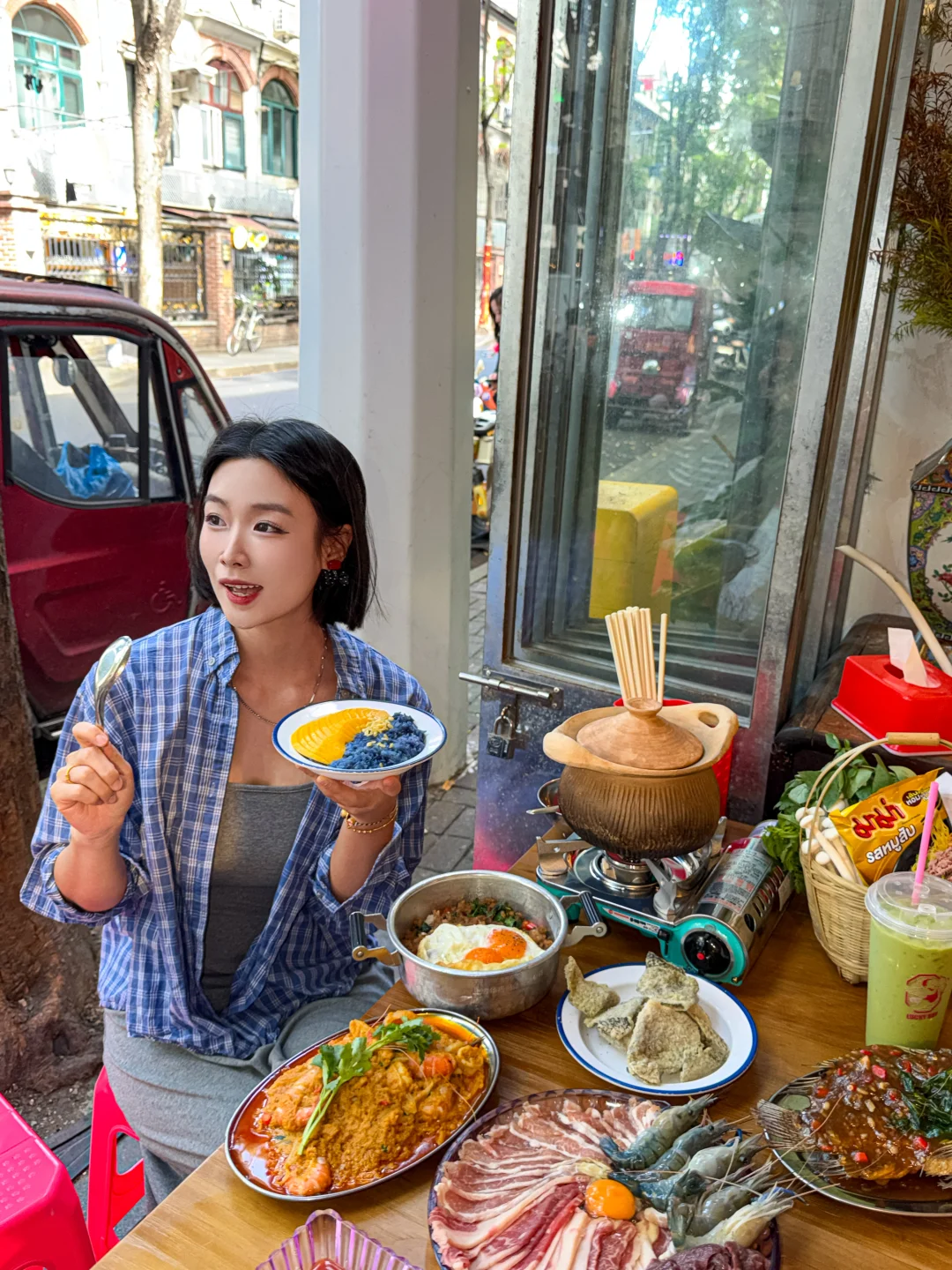 ☝🏻南京西路上我认为数一数二的泰料! 每每和朋友逛街都想去吃的街头餐厅✨ 从霓虹灯门头,到复古的装修再到独有的街边氛围……真是爱惨了🥹
