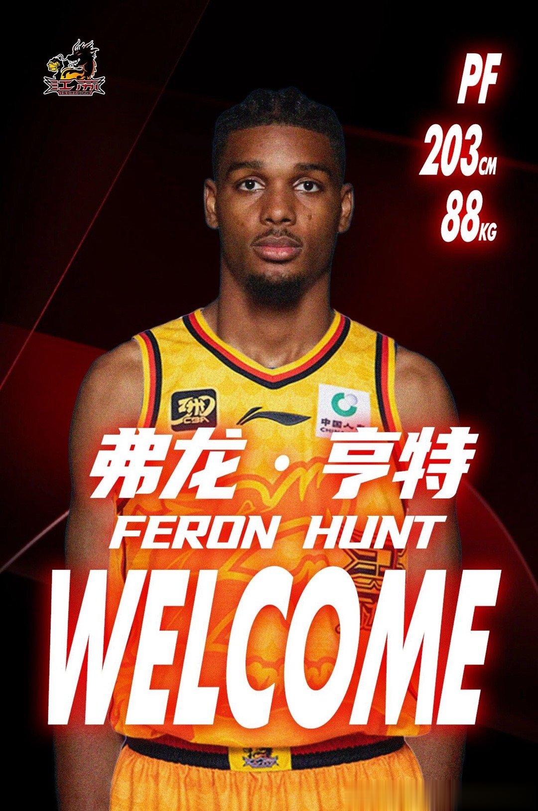 [官宣]经双方友好协商,江苏肯帝亚篮球俱乐部正式与弗龙·亨特(FeronHunt)签订外籍球员聘用合同。待CBA公司审核通过公示后,2025-2026赛季,弗龙·亨特将代表江苏肯帝亚男篮出战!欢迎亨特加入江苏肯帝亚大家庭!新赛季我们一起加油