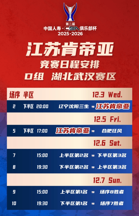 配文:第二届CBA俱乐部杯赛江苏小组赛赛程火热出炉!武汉见!