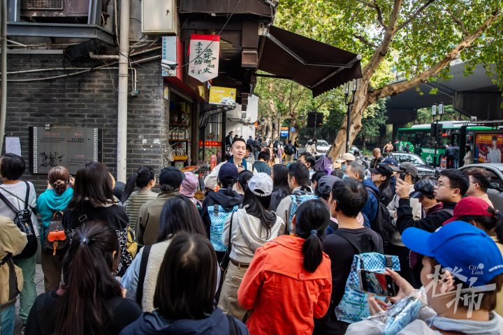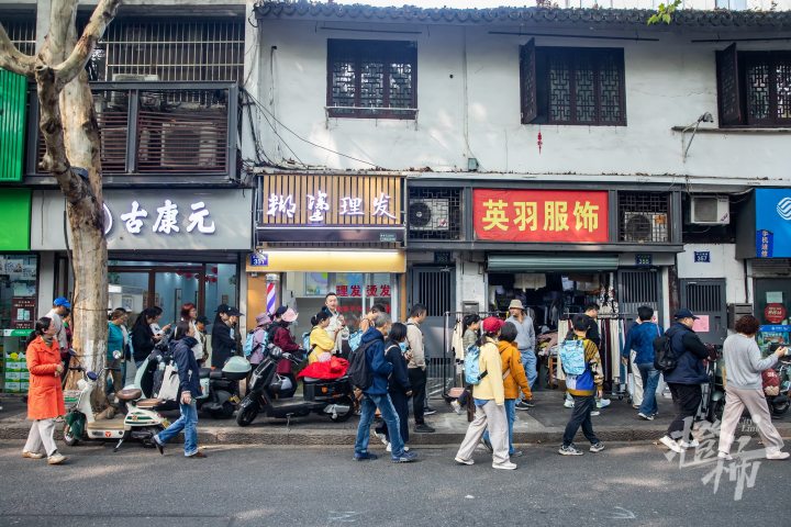走过熙熙攘攘的太庙广场和察院前巷,拐进更加闹猛的城隍牌楼弄,这里是杭城极具人间烟火气的“南宋CBD”,新鲜的水果蔬菜,油光发亮的酱鸭酱肉,还有在大锅里翻炒冒着热气的糖炒栗子……这些“马路菜场”虽然门面不起眼,但各个名气响当当。董臻说,“我一个平常不太做饭的人,只要是来到这里就会忍不住想买点菜回家去下厨。”队伍里的人频频点头,颇有同感。