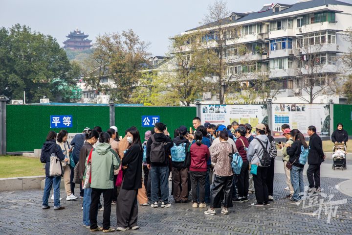 沿着中山南路一路向北,董臻特地带大家看了白马庙巷口的紫阳泉。这口井自南宋时起就有,曾经也叫作白马泉、饮马泉,在南宋皇城的古图中,就已经有它的存在。一位橙友说,自己外婆家就住在太庙附近,来来回回那么多次,竟然还是第一次走近看到了这口井。
