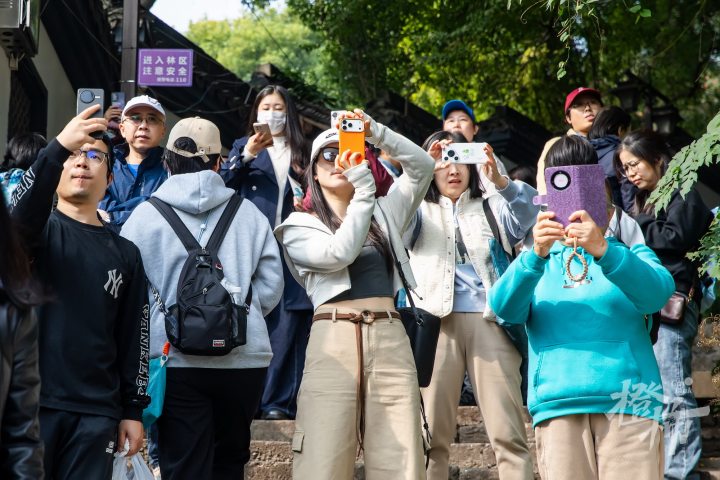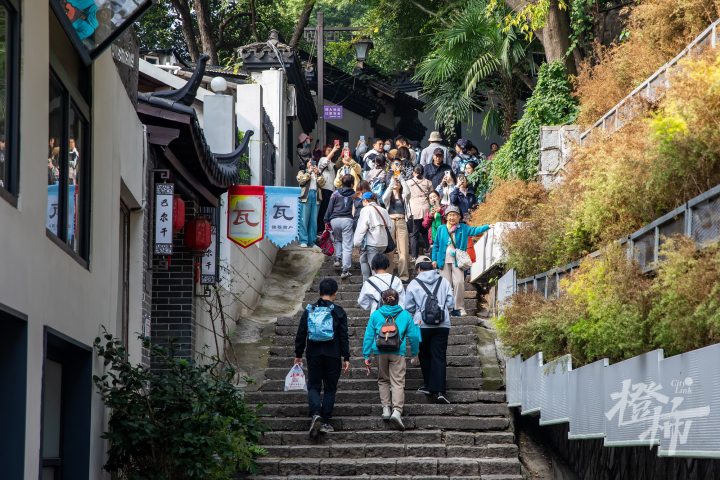 “走运”路线继续往前,拐到晓霞弄,走到山脚平台打卡了可以看到望仙阁的“网红机位”。