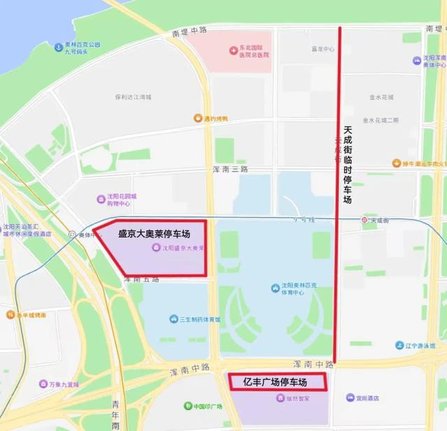 入场高峰时段,根据车流、人流实际情况,临时将营盘北街(浑南中路至浑南三路)路段调整为由南向北单向通行。