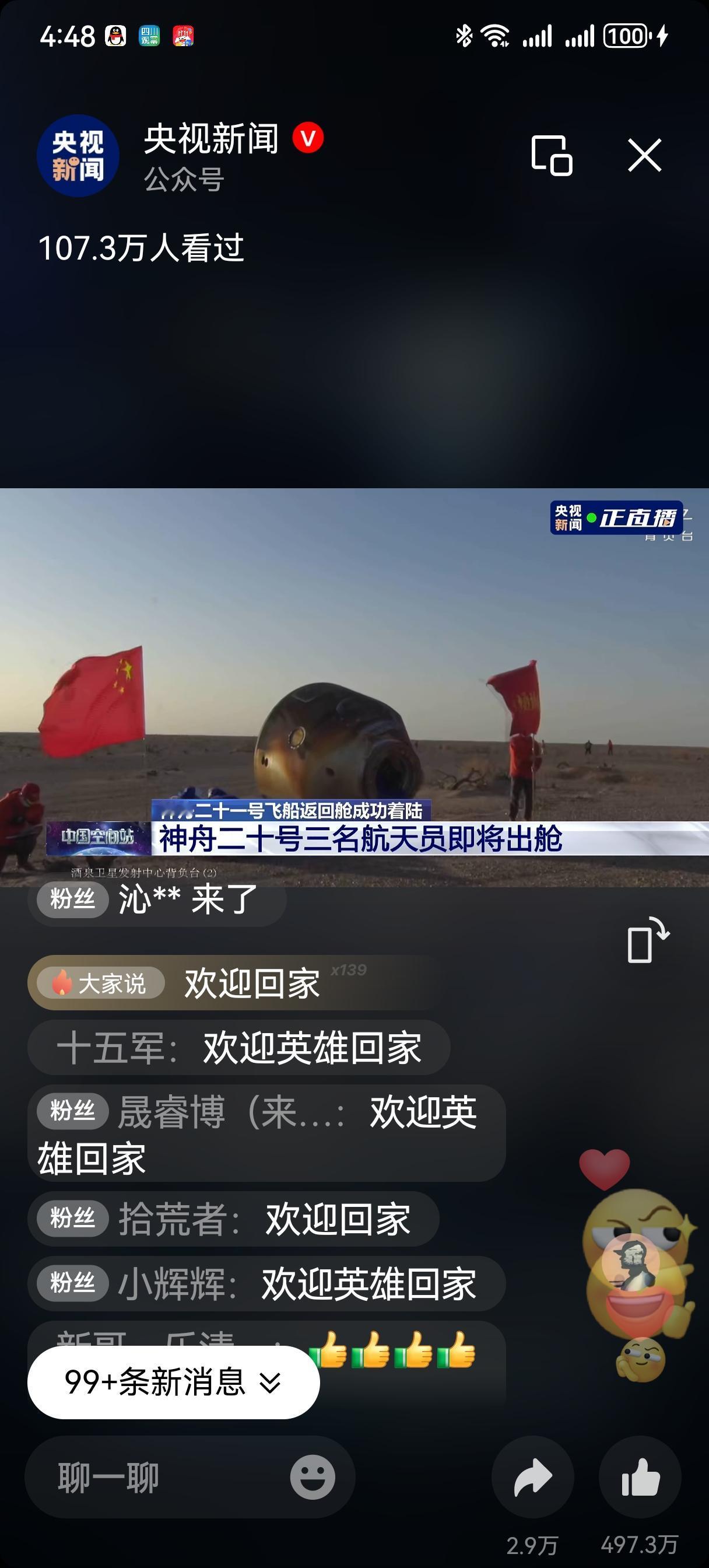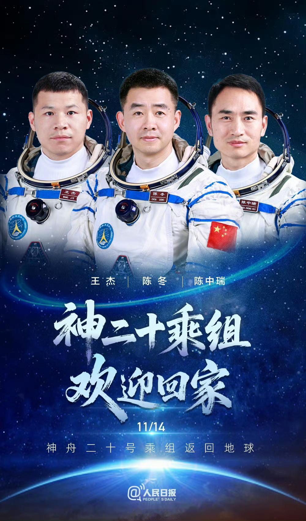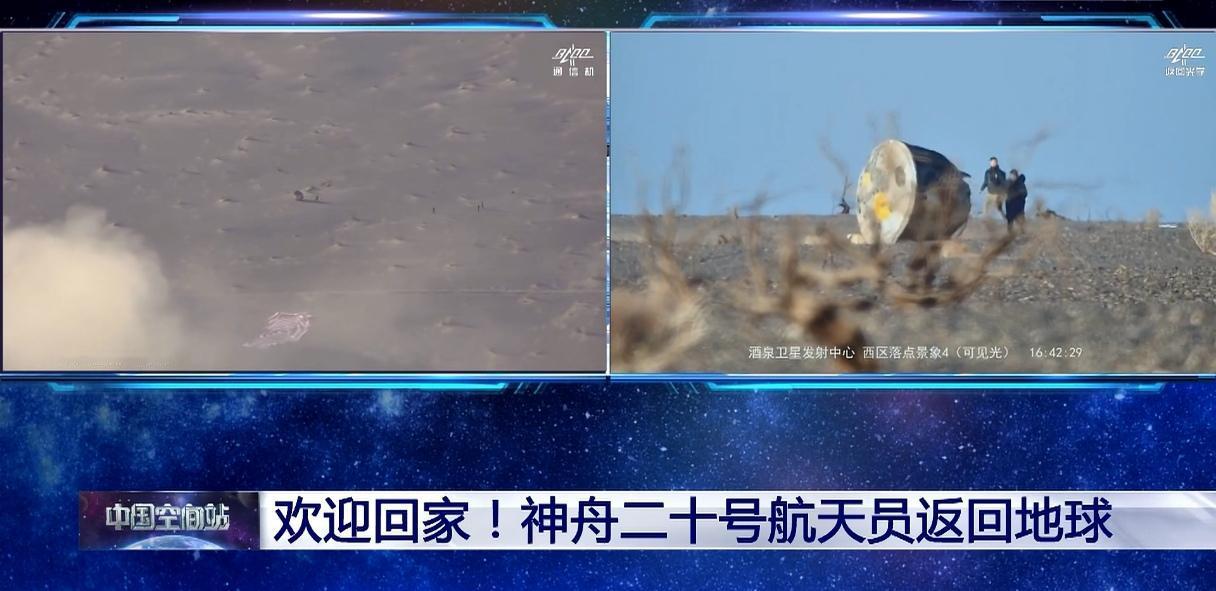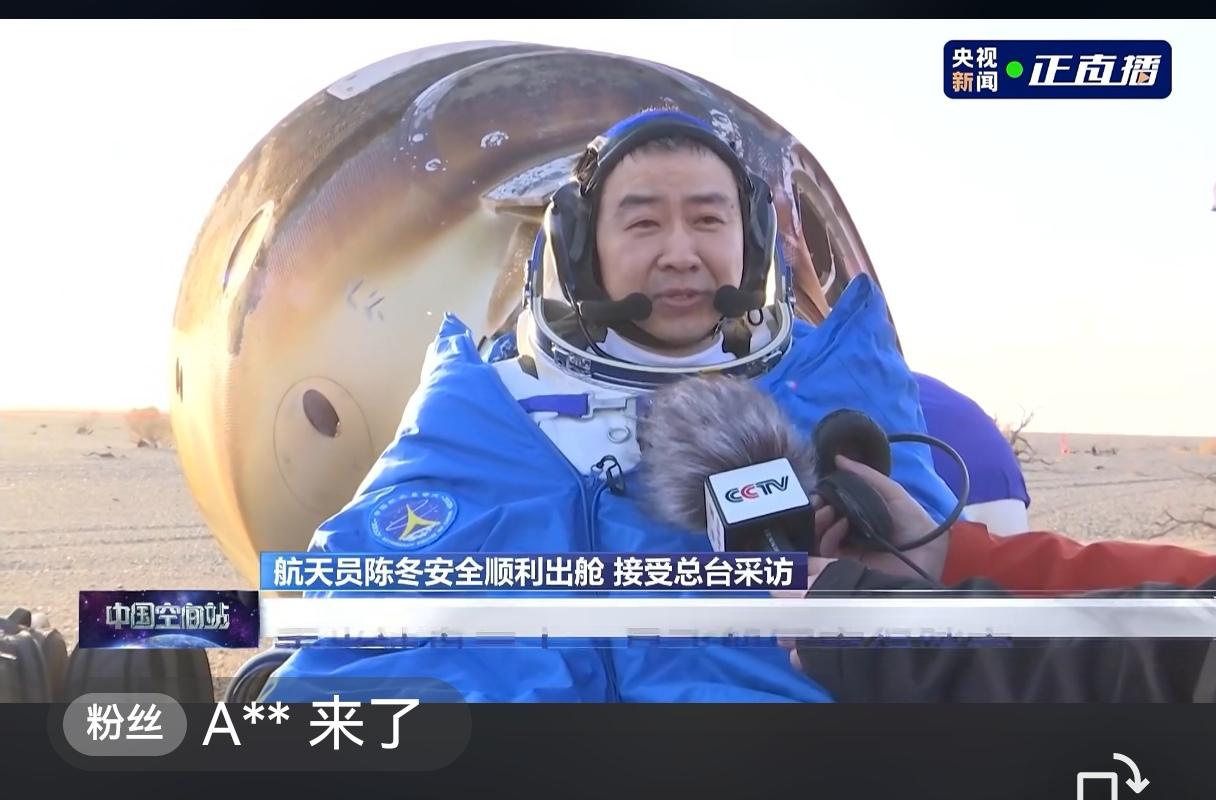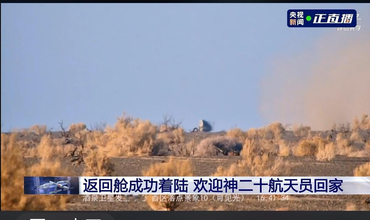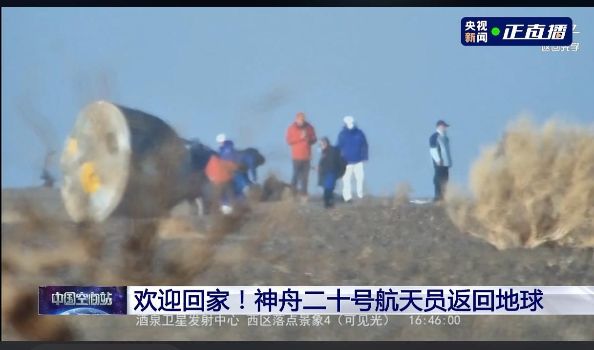 经过四次紧张且准确的落点汇报,我们的神舟二十号航天员乘组陈冬、陈中瑞、王杰乘坐的神舟二十一号于16:40平安降落在东风着陆场、16:42空中搜救组到达现场、16:43地面搜救组到达现场;16:45医护人员就位开始准备舱内微生物及宇航员身体状况、16:55完成身体检查并向大家汇报宇航员身体状况良好。 17:12时01航天员陈冬顺利出舱,接着17:17时02航天员陈中瑞出舱,17:20时03号航天员王杰出舱。三个人接受王刚的采访,共同的心声就是感恩伟大的祖国。中午11点三人组在太空吃了午饭,现在高高兴兴地去吃兰州牛肉拉面啰。这一次我们的宇航员们用六个小时实现了天地旅程,比地面上城市间出差还快。 虽然这一趟太空之旅比既定的返航时间推迟了9天(原计划11月5日),但203天的在轨时间打破了此前中国宇航员乘组在轨最长时间183天(陈冬累计在轨时间已突破了400天);更大的惊喜是坐着20号上天,坐着21号入地,太空站换船,这是人类航天史上突破性的一步。 另外,我们将择日发射神舟二十二号,去接神舟二十一号乘组由张陆、武飞、张洪章回家。