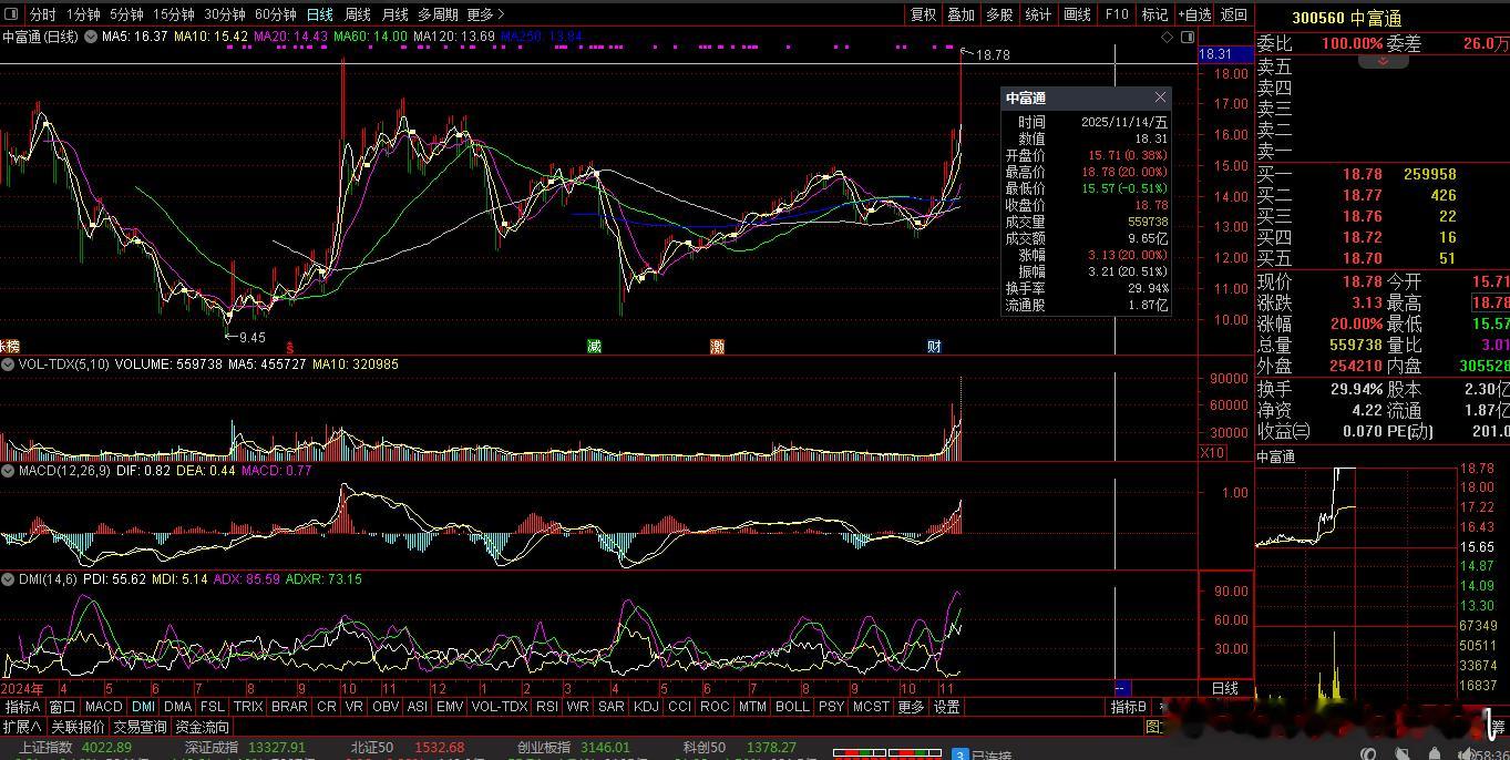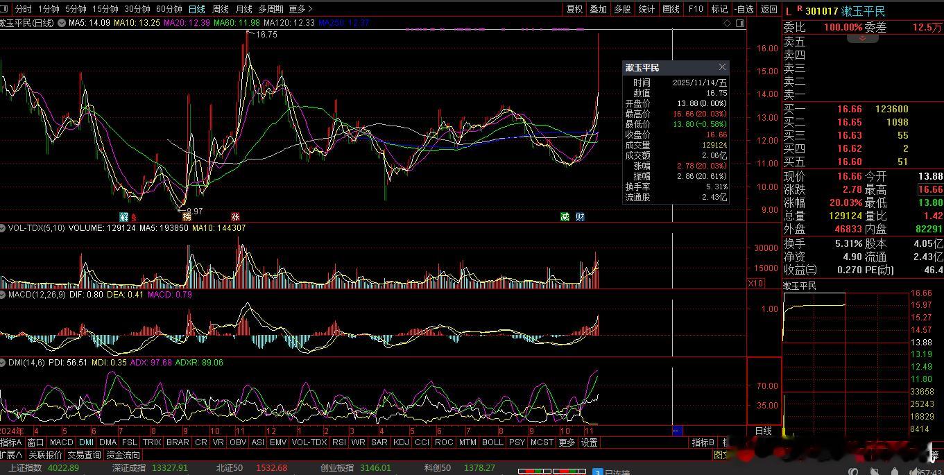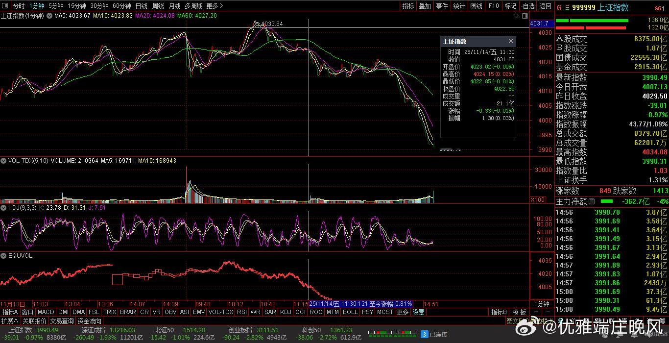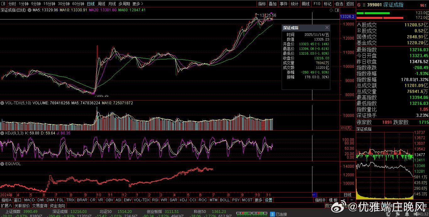 【财富晚茶】午盘透析(11.14):北证涨幅0.20%:渔业反弹消费回调导语:作者系《网易号》优质财经领域创作者。曾经原创作者和知名网易号旅游领域创作者。大跨度行业等的写作,颇受网友喜爱。作品发表于2025.11.14.12:18 优雅端庄晚风。【内容概述】今日股市午评:截止11:30:沪指:贡献4根阳线1阴线。深指:贡献2根阳线3阴线。沪指突破:阻力位:04030点。沪指跌破:支撑位:03994点。深指跌破:阻力位:13488点。深指跌破:支撑位:13222点。追寻盘面:沪深低开做多夭折,尾盘双头筹码出逃。一、透析市场:风口公司,上下起伏920974 凯大催化 盘中04涨1、突破三年箱顶视野盘面:前期双顶:脉冲突破。2025-11-14 截至15:00:股价报收:9.14元。该股上涨:0.22%。成交总量:62471手,成交金额:5766万元。总换手率4.86%,观总市值:14.97亿元。流通市值:11.74亿元。2、贵金催化翘楚主营业务:贵金属催化材料的研产和销售。公司品牌:国产贵金属催化材料的主要供应商。3、经营优良企业财报透视:2025-09-30 三季度报:公司营收:7.7484亿 同比增1.87%。公司净利:2568.824万 同比增69.27%。二、沪深绿盘:多方强势,喜剧股市今天目击:沪深北市:早盘:低开探底,三涨一跌。尾盘:二涨一跌,次低绿盘。看点之一:沪深两市:盘中低开:窄幅震荡,瞬间拉升,见顶抛筹。看点之二:二只乌鸦:创科创50:弱势下探。看点之三:沪深北市:半日成交:12469亿元。盘面追踪:2858股飘红。三、沪深阳棒:个股强势,赚钱效应沪深追踪:截至午间:市场收盘:沪指跌0.16%报4022.89点,深指跌1.10%,创指跌1.74%,北证50指涨0.20%,沪深北市:合计成交:12469亿元。四、盘面观察:渔业脉冲,消费回落1、板块扫描透析沪深板块:板块走强:渔业、燃气、石油、医药、地产、银行等。板块走低:消费、半导体、食品饮料、酿酒等。概念活跃:海南自贸、创新药等。2、个股涨跌起伏沪深北市:多空遭遇。2858股票上涨,80涨停板。2426股票下跌,2股跌停板。沪深北市:合计成交:12469亿元。午盘视野:沪深低开触低反弹,尾盘见顶高位抛压。五、沪深涨跌:三甲前茅,安不忘危1、今日涨幅谁家主旋律:天经地义:风口股票涨停板301017 漱玉平民 300867 圣元环保 300560 中富通第一、涨幅榜眼排行榜-1:301017 漱玉平民主营业务:医药零售连锁的研产和销售。公司品牌:中国连锁药店排行榜前十强。排行榜-2:300867 圣元环保主营业务:城镇固液废专业化处理。公司品牌:中国环保行业优秀企业。排行榜-3:300560 中富通主营业务:通信信息化软件-数字营销边缘计算-渠道销售的研产和销售。公司品牌:卓越数字科技生态服务商。第二、综评榜技术看盘-1:300560 中富通。潜力股票-1:300560 中富通:卓越数字科技生态服务商。风险股票-1:暂时没有:即无。2、今日跌幅谁家主旋律:摇摇欲坠:弱势股票涨停板688525 佰维存储 605365 立达信 300302 同有科技跌幅榜-1:688525 佰维存储主营业务:半导体存储器存储介质应研产和销售。公司品牌:全球一流的存储与先进封测厂商。跌幅榜-2:605365 立达信主营业务:LED照明-智能家居-智慧建筑等物联网领域产品的研产和销售。公司品牌:一流家居和商业空间综合物联网解决方案提供商。跌幅榜-3:300302 同有科技主营业务:企业级存储系统-军工及工业级固态存储的研产和销售。公司品牌:国内领先的企业级专业存储厂商。六、创作不易:优质网易,财经作者投资投机迷茫之中:给予尽可能有帮助:资本市场风险自负。(优雅端庄晚风《网易号》财经领域创作者和原创作者 违者必究)