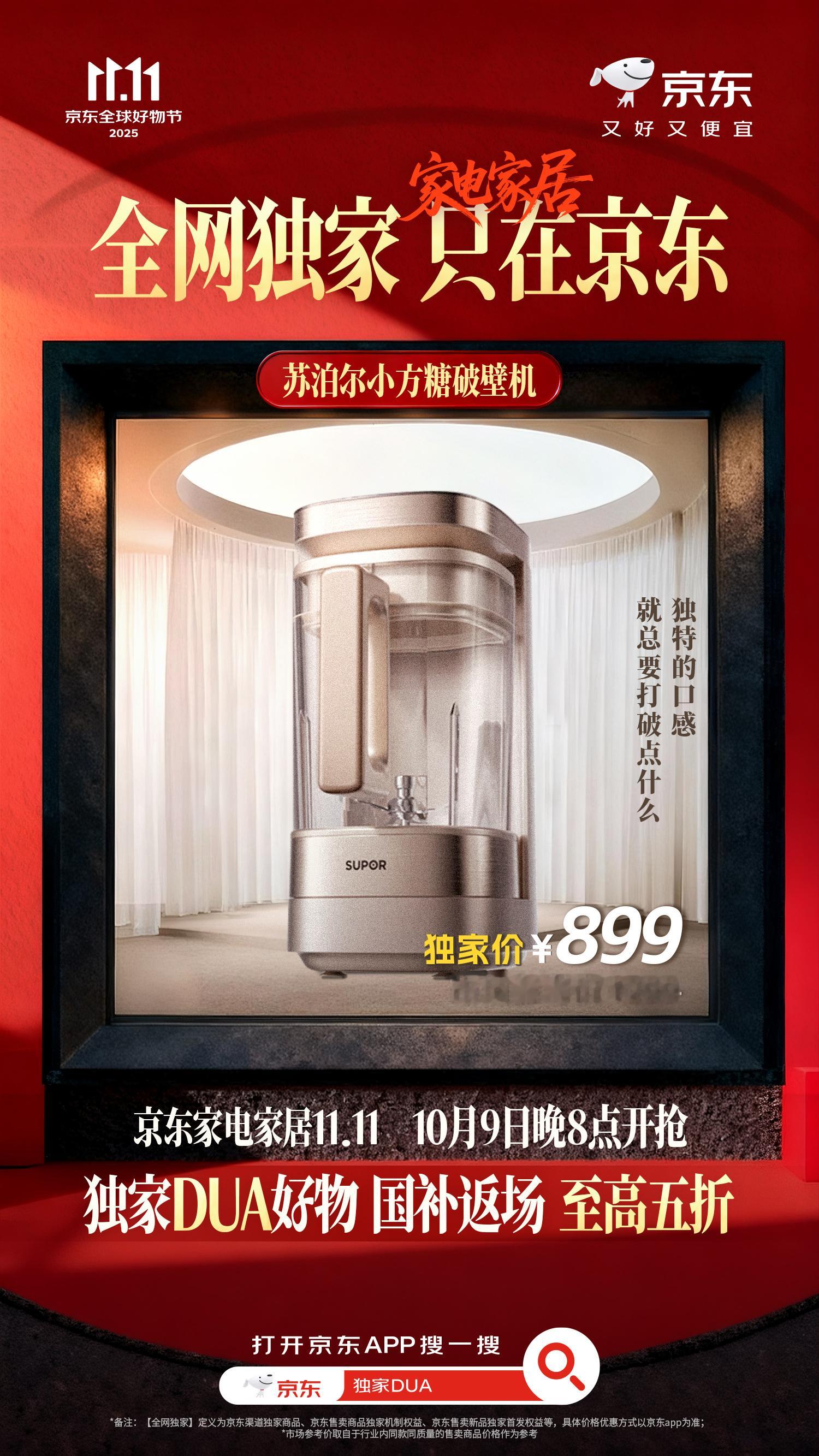 刚练完臀腿,浑身酸痛地瘫在沙发上,突然觉得——最好的生活,不就是被贴心好物包围的松弛感吗?听说京东家电家居准备了一盘“独家好货”,全网质量顶价格又香!双十一这波我可盯紧了,尤其是那个【京东独家DUA】的梗,真的懂我们想要什么~国补返场加磅,居然至高5折!10月9日晚8点,京东11.11盛大开启,现货不用等!,我已经设好闹钟啦!必入清单也帮你们试过水了:吸尘棒随手一吸超级轻松;破壁机轻音不吵颜值高;电视追剧健身两不误!好啦,赶紧打开京东APP搜【独家dua】,这波独家好物别处真没有~一起冲呀!