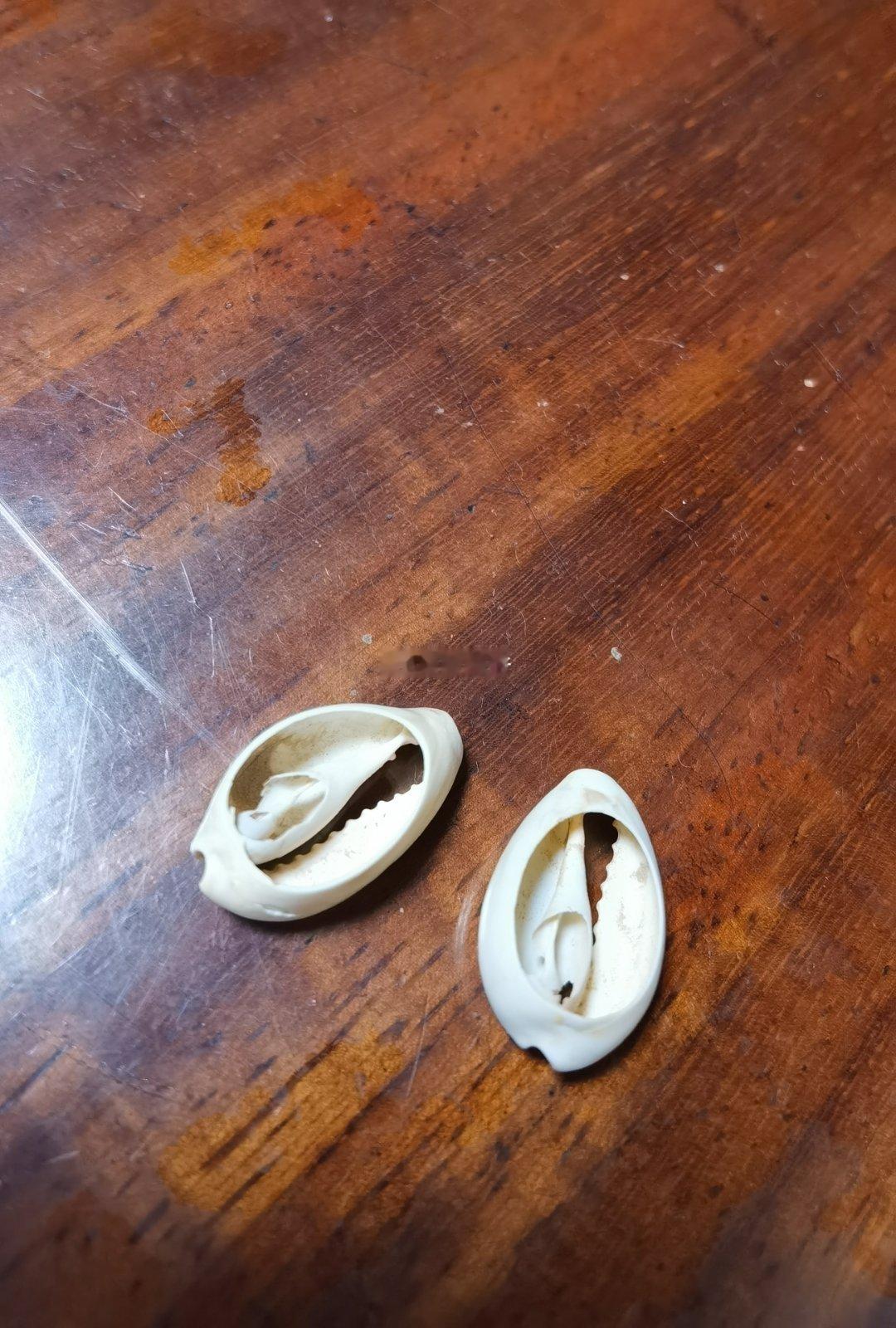 这两枚不是普通的天然贝,而是出土自河南的夏商时期贝币。在中国的钱币史中,贝币是个独特的币种。如果你在内陆地区挖到这类贝壳,又有人工加工的痕迹,那么百分百就是三四千年前的天然贝币。天然贝币都来自海南岛,但作为钱币流通主要在中原地区。