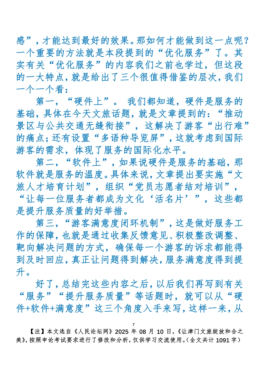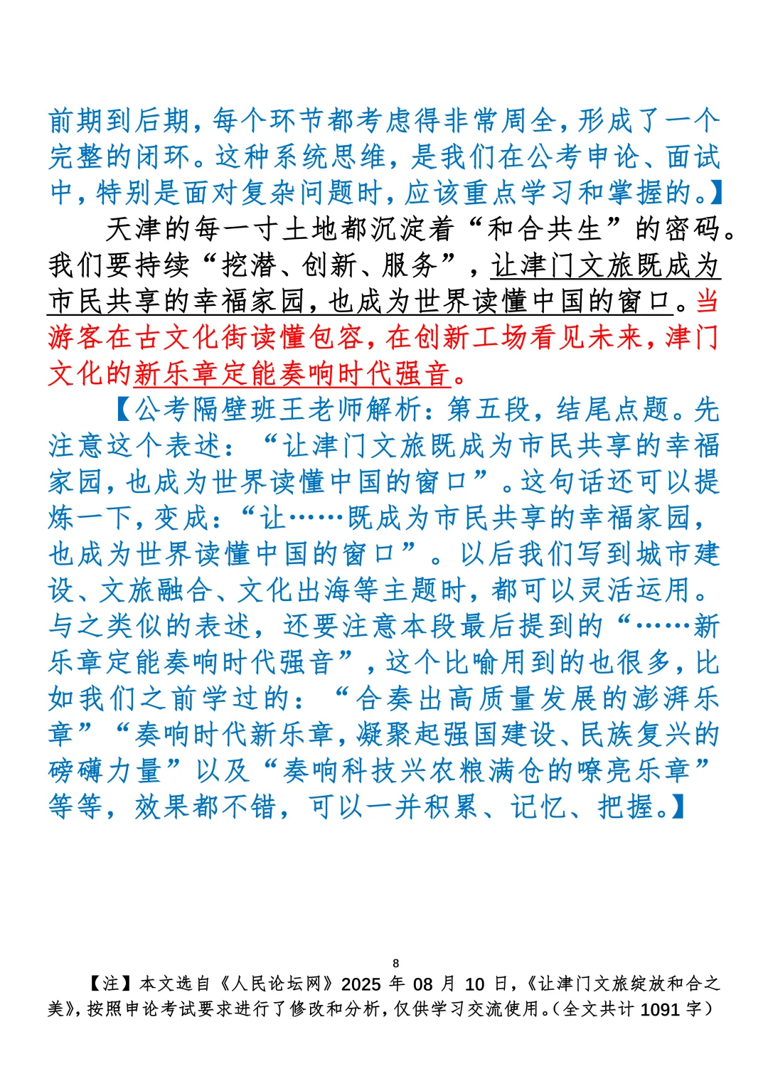 如何抄写:每日抄写文章发在“公考隔壁班王老师”账号,红色字是重点句和结构句,黑色字是正文,蓝色字是解析,大家抄写时不必抄蓝色字。建议先通读全文,做到心中有数再开始抄写,效果会更好。关于文章:抄写文章来源于人民日报,但每篇文章我都根据申论考试要求进行了修改:一是重写或修改开头、结尾;二是统一段首句句式结构;三是调整段落字数,使文章结构更均衡;四是简化复杂长难句,使之更具可模仿性。每篇文章无论修改多少,都是基于申论考试要求,毫无对人民日报文章品评之意。(此处致敬人民日报)申论 遴选