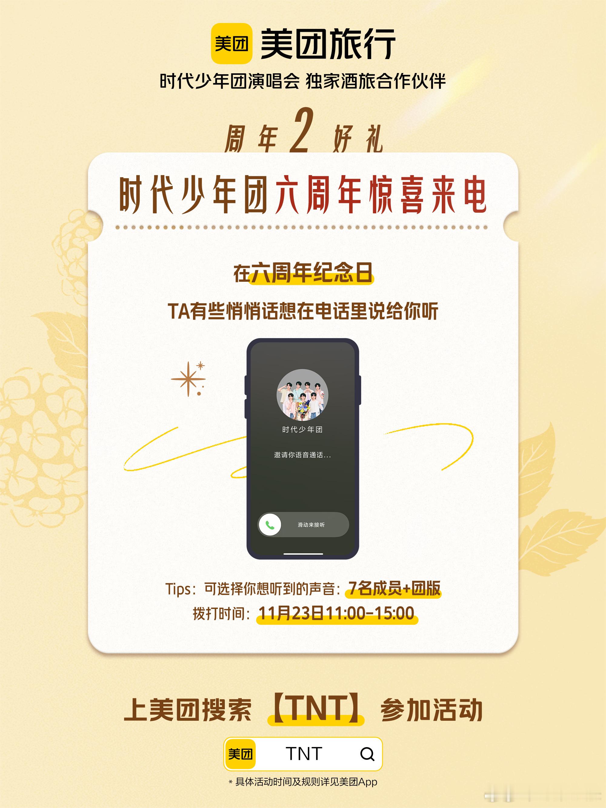 从预约惊喜到现场狂欢,我的追星旅行全靠美团安排明白!🤗追星这件事,从来不只是远远仰望,更是一场奔赴热爱的旅程。时代少年团六周年之际,我通过美团旅行,把这场单向的喜欢变成了一次双向的奔赴。整个过程,像被施了魔法一般,顺畅得令人惊喜。打开美团搜索「TNT」,一键就跳转到了时代少年团的六周年专属活动页面。页面设计得青春洋溢,扑面而来的活力感瞬间点燃了我的期待。最让我心动的是预约定制惊喜电话的环节——操作界面简洁明了,流程指引清晰,几乎没花什么功夫就完成了预约。那份期待偶像亲口送来祝福的心情,至今想起仍会嘴角上扬。更幸运的是,参与页面的抽奖活动时,我居然抽中了限量周边!那一刻的喜悦,仿佛已经为这趟旅程开了个好头。为了能全身心投入这场盛会,我在美团上预订了场馆附近的精品酒店住玩套餐。这个选择简直太明智了!酒店距离场馆步行仅需十分钟,这意味着演唱会结束后,我可以轻松避开拥挤的人流,慢慢回味刚才的激动。套餐还非常贴心地附赠了周边景点的门票,让我在白天能够悠闲地逛逛当地特色景点,感受这座城市的文化氛围。白天漫步古迹、打卡网红地标,晚上奔赴场馆尽情欢呼——这样的行程安排既充实又不会太过劳累,完美实现了“一场旅行,双重享受”。终于到了演唱会当晚。走进场馆,环顾四周,满眼都是闪烁的应援灯和激动的粉丝。当时代少年团出现在舞台上,熟悉的旋律响起,我跟着全场一起放声合唱、尽情欢呼。那一刻,所有的等待与奔波都变得无比值得。热血在胸腔沸腾,感动在眼眶打转——这就是我们热爱现场的原因,这就是青春最鲜活的模样。不得不说,美团旅行这次真的把“追星+旅行”的体验玩明白了。从活动预约、行程规划到住宿安排,每一个环节都设计得恰到好处,既满足了追星的情感需求,又保障了旅行的舒适便捷。这次经历让我深深感受到:原来,奔赴偶像的路上可以如此省心又美好。如果你也想让追星之旅变得轻松又难忘,不妨试试美团旅行——它真的能帮你把热爱安排得明明白白!