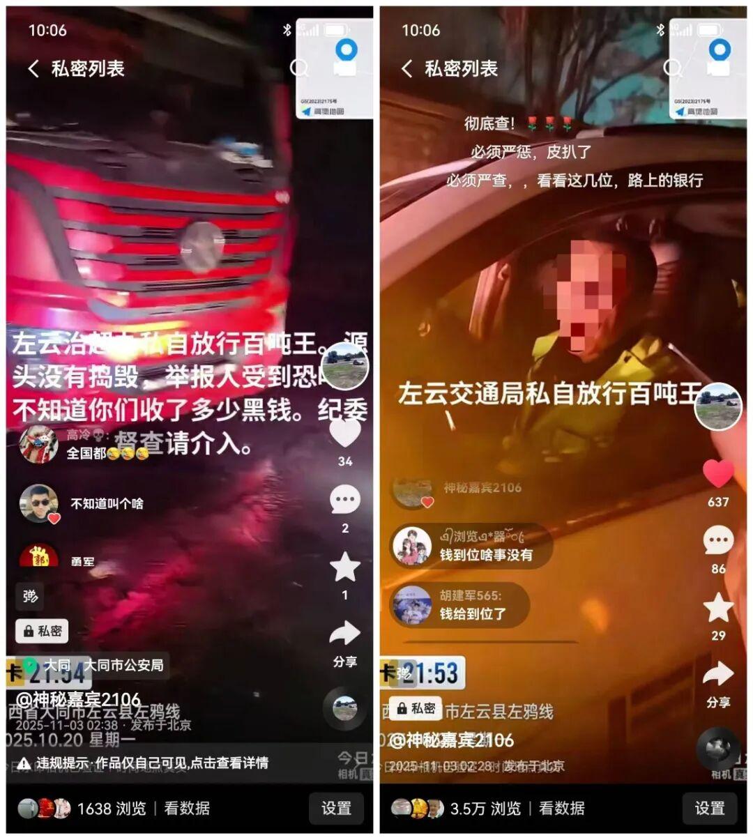 11月7日上午,左云县公安局云兴派出所民警在网络巡查工作中发现,有一网民在网络平台上发布了几则视频,视频内容声称“左云县交通局私放百吨王大货车”。