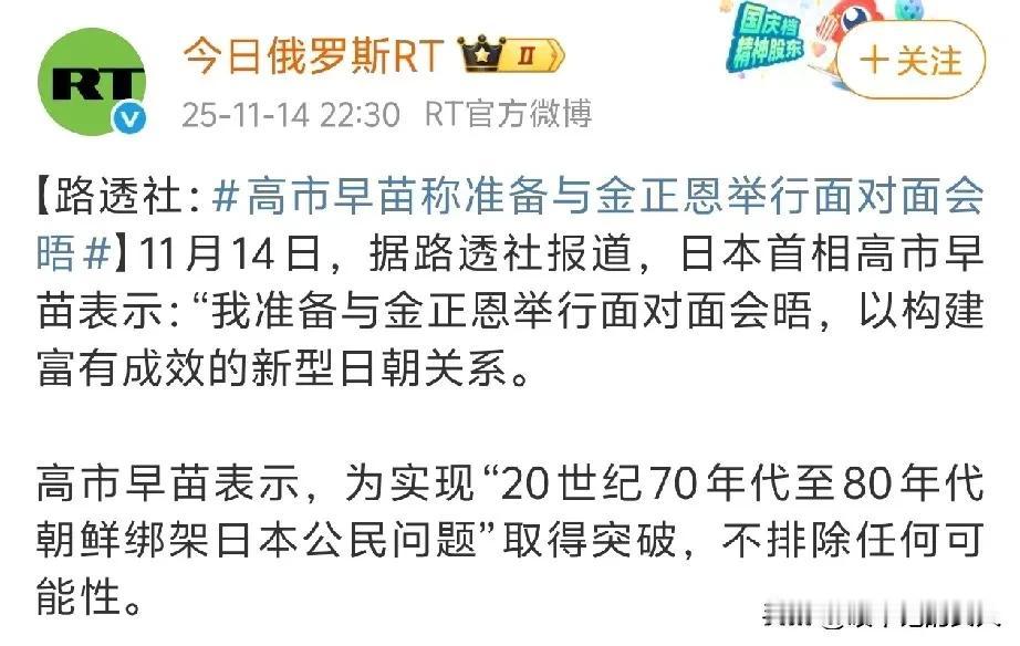 想得美?! 据路透社报道:高市早苗准备与金正恩举行会晤? 这是闹