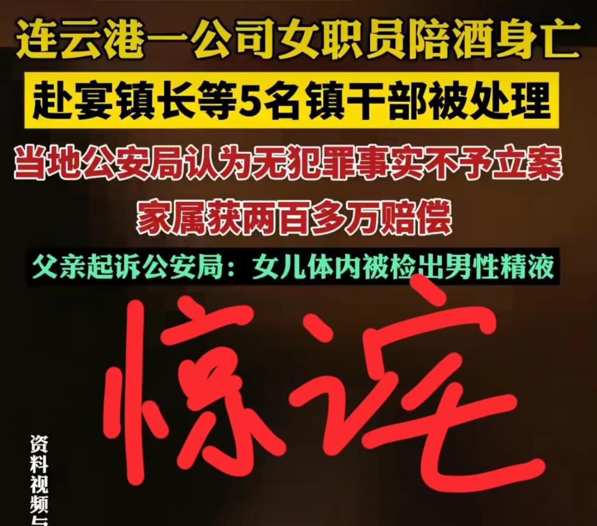 连云港一公司女职员陪酒身亡,体内检测有男性精液,赴宴人员被处理5人,但神奇的是认
