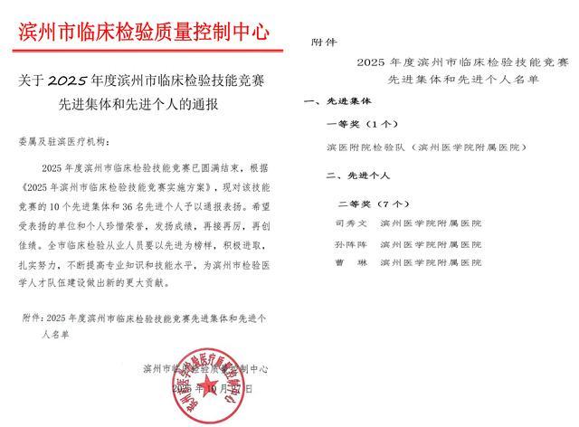 滨医附院检验团队在两项竞赛中双双折桂,绝非偶然。这既是参赛队员刻苦钻研、勤学苦练的成果,更是医院长期以来高度重视医学检验质量、强化学科内涵建设、狠抓专业技能培训的集中体现。团队奖彰显了其整体实力的均衡与强大,个人奖则凸显了其在关键技术岗位上的顶尖人才储备。