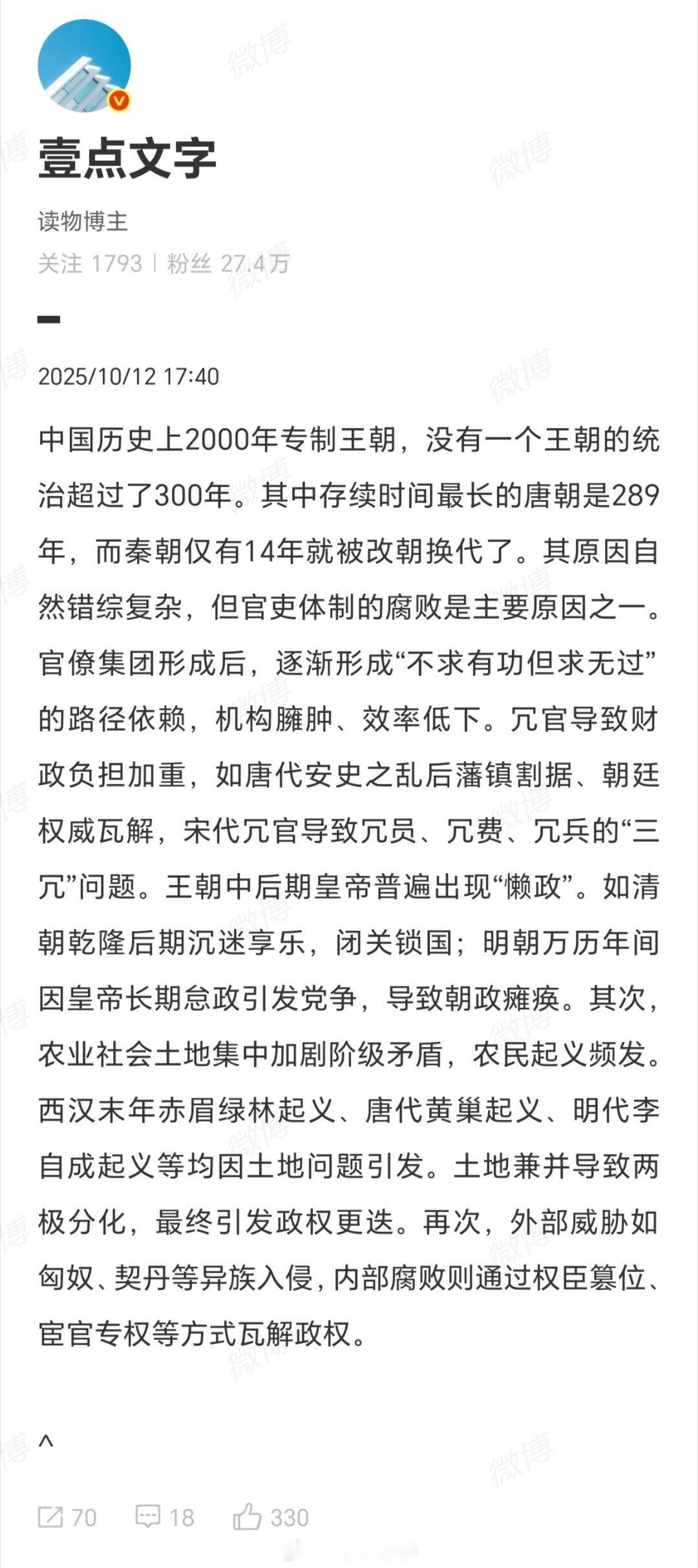 读书少见识少,就会认为在前工业时代,一个幅员几百万平方公里的超大型政权统治时间“只有不到三百年”太差劲了。已经不能说是凡尔赛了,简直就是马斯克哭穷。