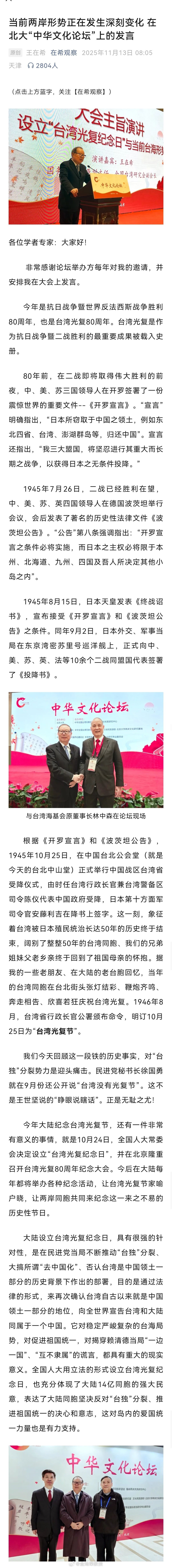 两岸关系总在关键节点上演转折。2025年10月底,国民党副主席萧旭岑刚从天津返回