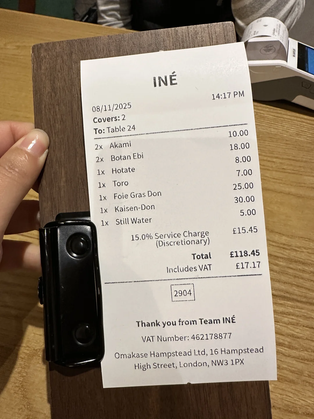 🙂↔️服务员推荐的海胆寿司不新鲜,有氨水味(反馈后,退了费用)
