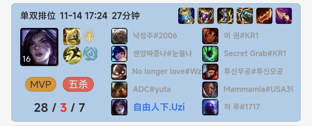 什么?永远滴神-uzi要复出了? 这两天,网传uzi要复出的消息,愈演愈烈。主要原因,还是这几天uzi一反常态,在韩服开启了疯狂上分模式,rank时间,堪比职业选手,目前已经打到了韩服大师459点。 从uzi的rank战绩来看,依旧保持着高超的水准,最近26把以70%的胜率,在韩服大杀特杀;其中一把卡莎,更是打出28杀,5杀的豪华战绩,秀翻全场; 现在正是转会期的时候,各方俱乐部都在开始布局明年的阵容,uzi复出,对于LPL来说肯定是好事,必然会引起很多人的关注。 为啥很多人都希望uzi复出,毕竟uzi在的时候,LPL的下路没弱过;现在LPL的下路,一言难尽,没有了当年“LPL盛产AD”的光环。 当然了,最近的每年S赛后,固定节目,都是先怀念一波uzi,然后各方消息传复出。今年也是这样,但以目前情况来看,确实有可能,想想uzi退役的时候,才23岁,现在看来是真的可惜。 UZi 英雄联盟[超话]