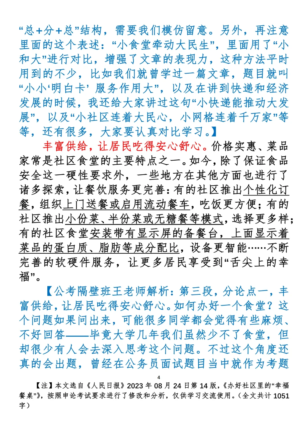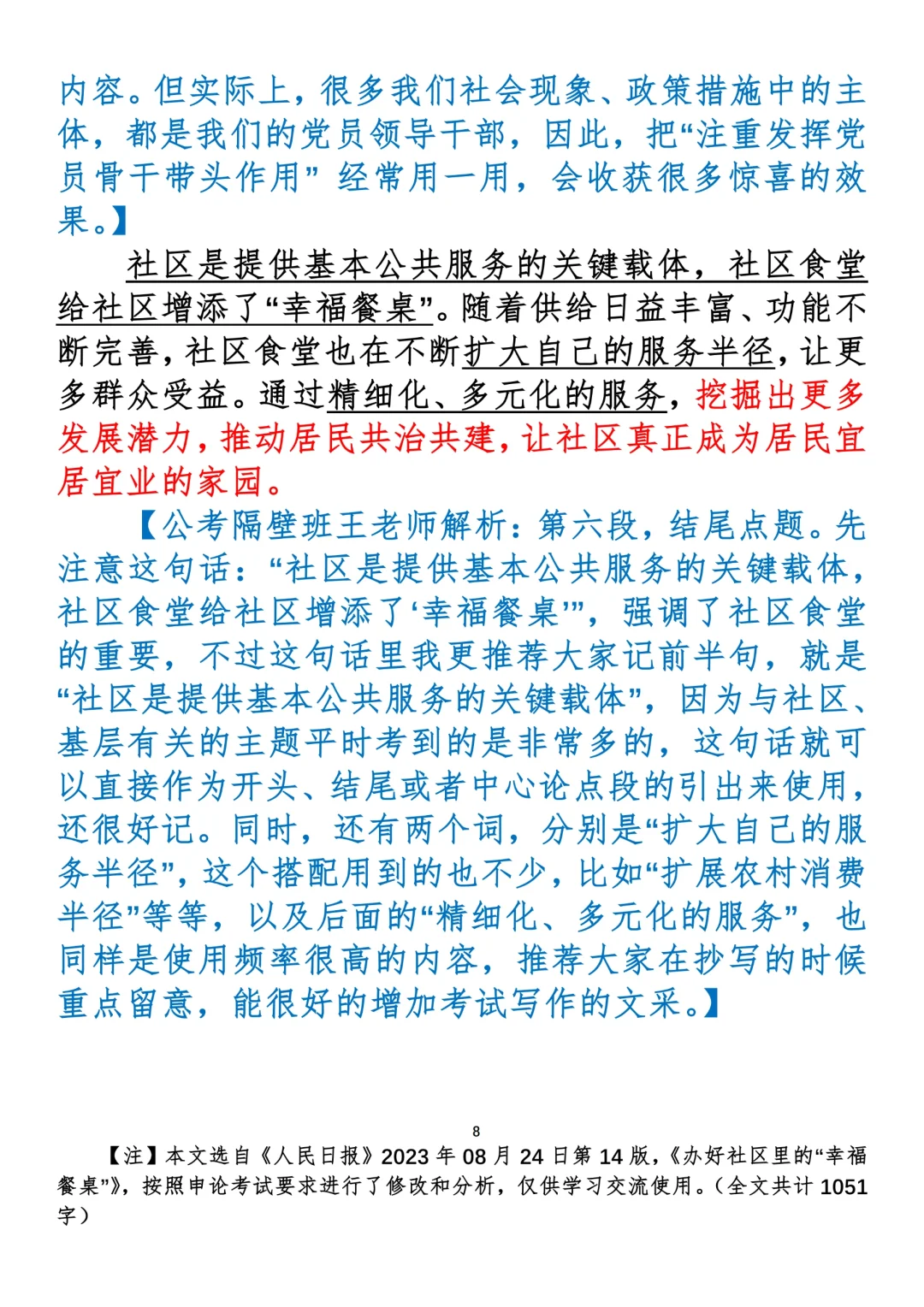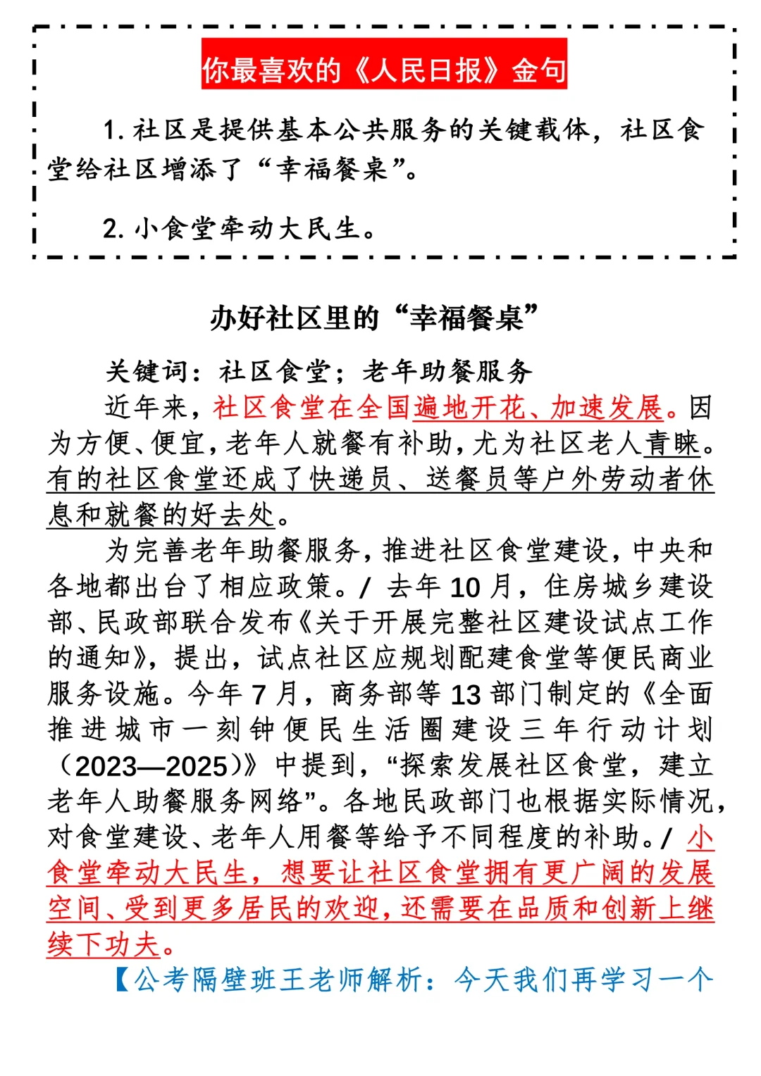 如何抄写:每日抄写文章发在“公考隔壁班王老师”账号,红色字是重点句和结构句,黑色字是正文,蓝色字是解析,大家抄写时不必抄蓝色字。建议先通读全文,做到心中有数再开始抄写,效果会更好。 关于文章:抄写文章来源于人民日报,但每篇文章我都根据申论考试要求进行了修改:一是重写或修改开头、结尾;二是统一段首句句式结构;三是调整段落字数,使文章结构更均衡;四是简化复杂长难句,使之更具可模仿性。每篇文章无论修改多少,都是基于申论考试要求,毫无对人民日报文章品评之意。(此处致敬人民日报)